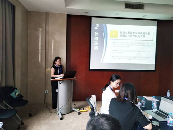 各小组讨论中,每一位青年学者都对自己的研究成果进行了汇报和交流。我院学生陈少晶、谢瑶分别在拉美经济组和拉美外交组进行了研究汇报。北京大学董经胜教授、我院孙若彦教授、浙江大学夏立安教授和中国政法大学拉美法律研究中心执行主任潘灯为各小组的青年学者进行了细致地点评。