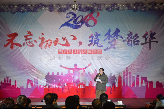 12月23日晚,历史与社会发展学院于长清湖校区综合教学楼C区101报告厅举办了“不忘初心,筑梦韶华”迎新暨师生联欢会。学校党委常委、副校长王洪禹,学院领导老师和四百名学生欢聚一堂。