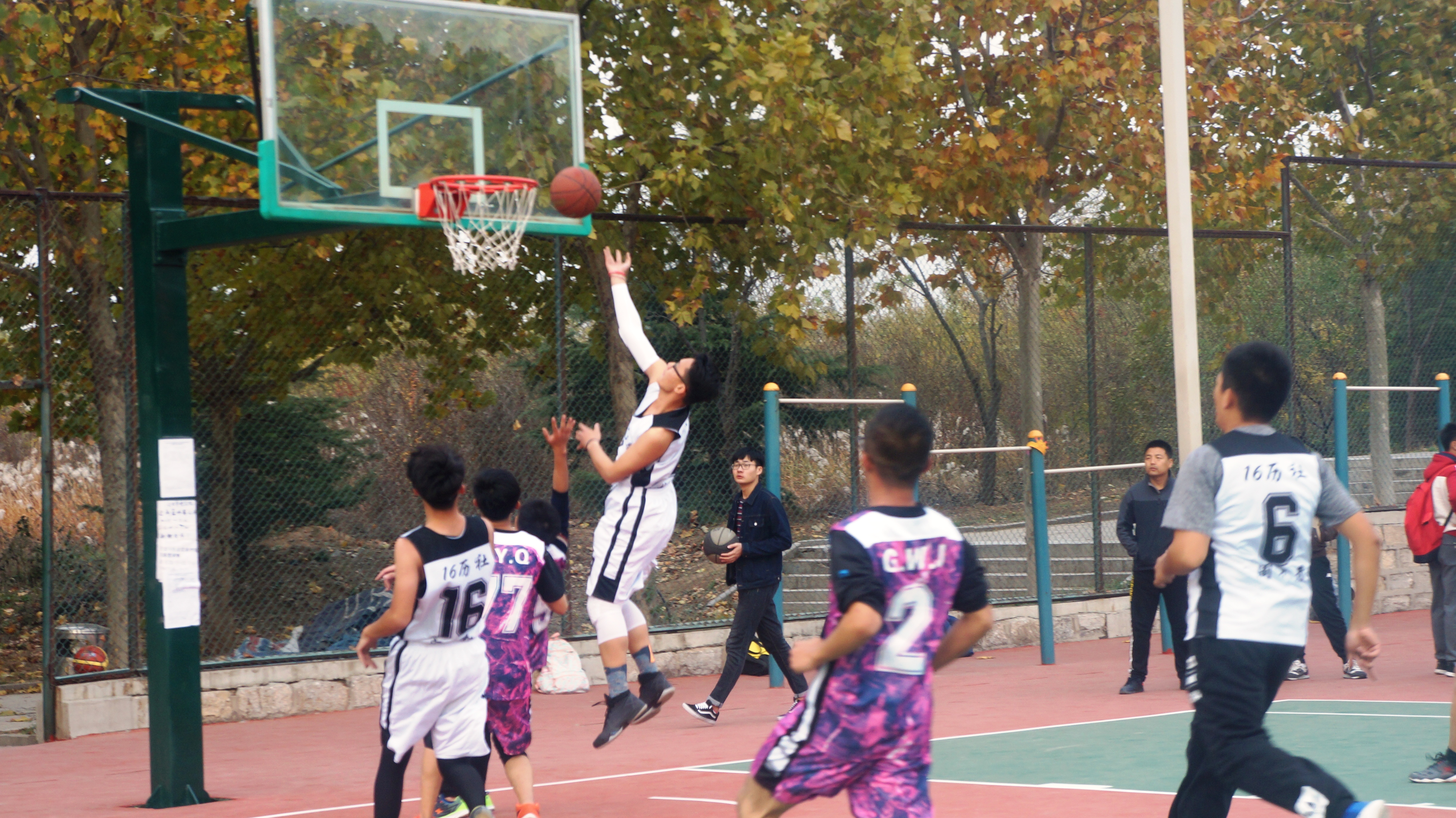 为丰富我院学生课余生活,增强团队精神和集体凝聚力,进一步增强新生间互通交流,10月31日,历史与社会发展学院于长清湖校区高地篮球场举办迎新篮球赛。学院党委副书记颜春杰,2016级辅导员高伟,2015级辅导员梁肖到场观看比赛,2016级和2017级本科生代表队参赛。