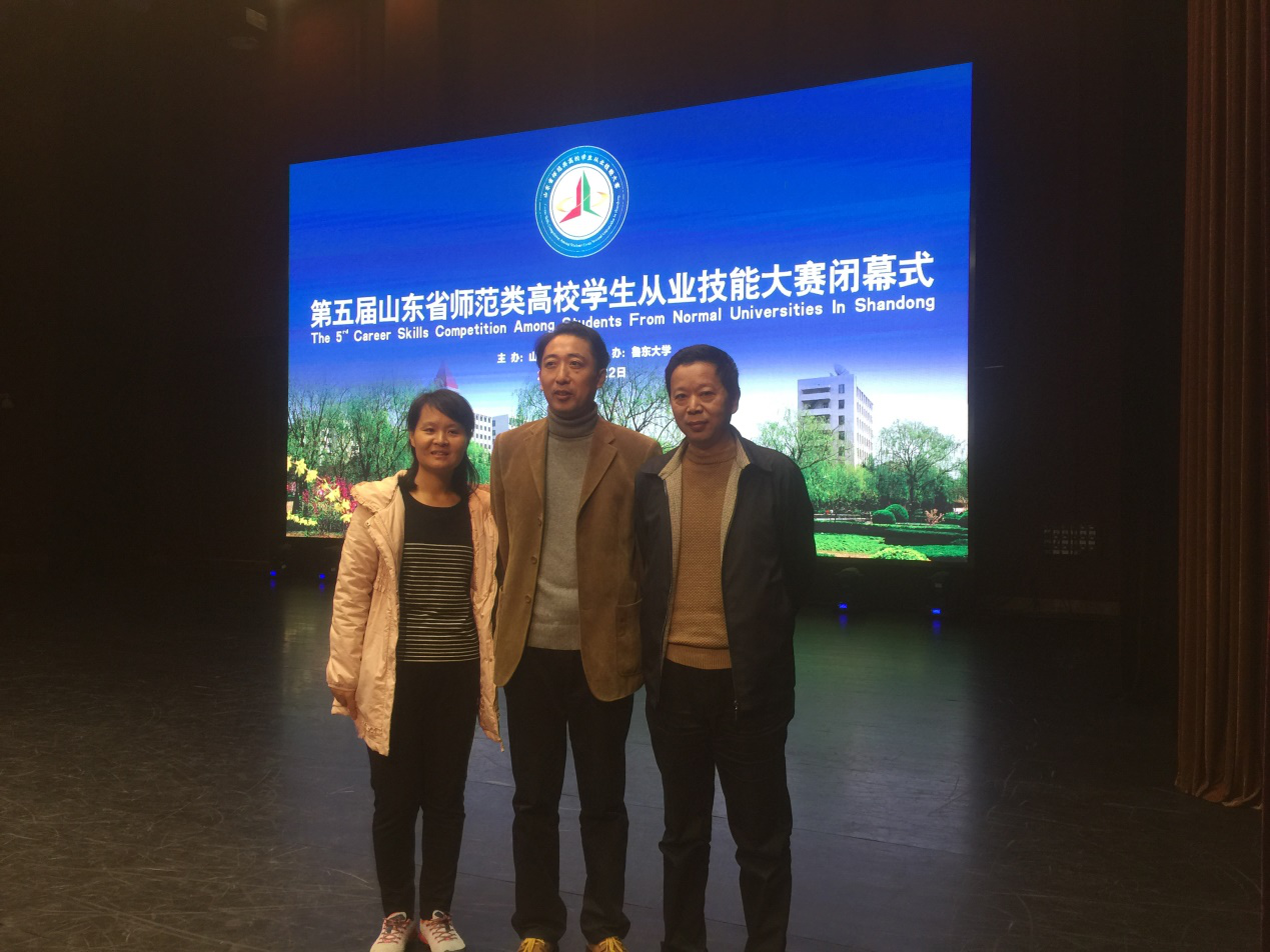 从今年五月份起学院就广泛发动,积极组织学生参加学院初赛,并为决赛参赛选手提供了专门的备课教室进行赛前训练。在备战决赛阶段,楼建军、仇世林、燕慧等三位校内指导老师,不仅多次对参赛选手的教学设计、教学语言、教姿教态等方面的注意事项进行了集中培训,还分别针对每位选手不同的教学风格与参赛学段进行了多次一对一指导。此外,学院还邀请到了济南中学高级教师范蕴涵、济南市实验初中一级教师李林林等优秀中学教师担任校外指导教师。校外导师多次来校给学生进行指导,从一线教学角度给参赛选手分析学情与教材,引导选手改进教学方法,提升创新意识,优化教学设计。不仅如此,为使选手更好地适应比赛环节、了解比赛流程,学院领导老师还在选手出征决赛前举办了一场学院赛前模拟赛。在学院领导的全力支持与指导老师的悉心指导下,参赛选手将压力化作前进的动力,最终在决赛中取得了优异成绩。