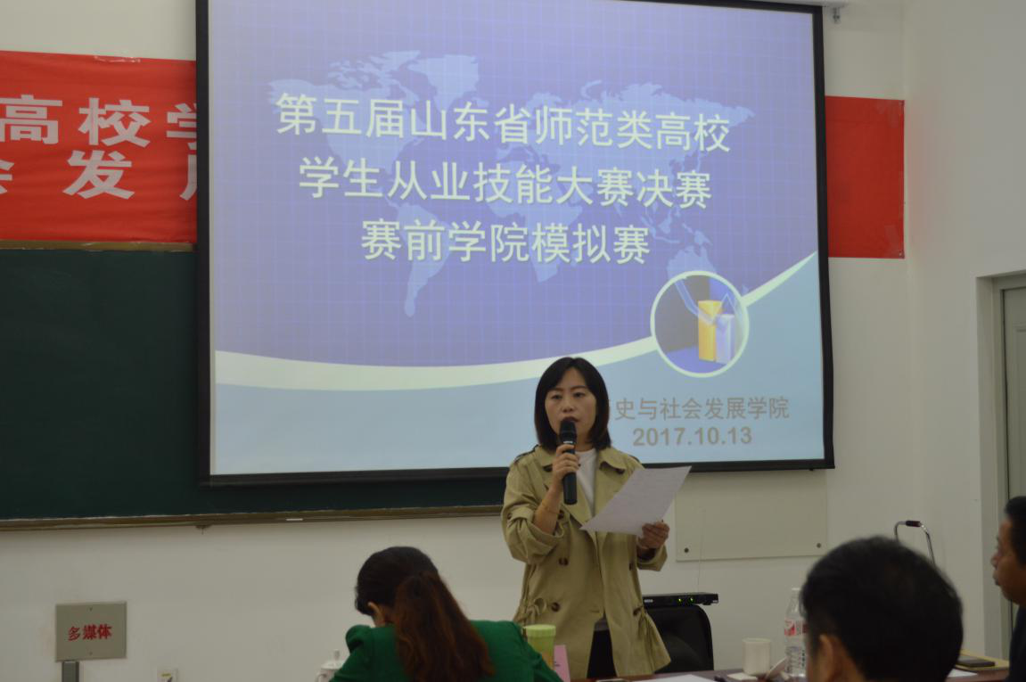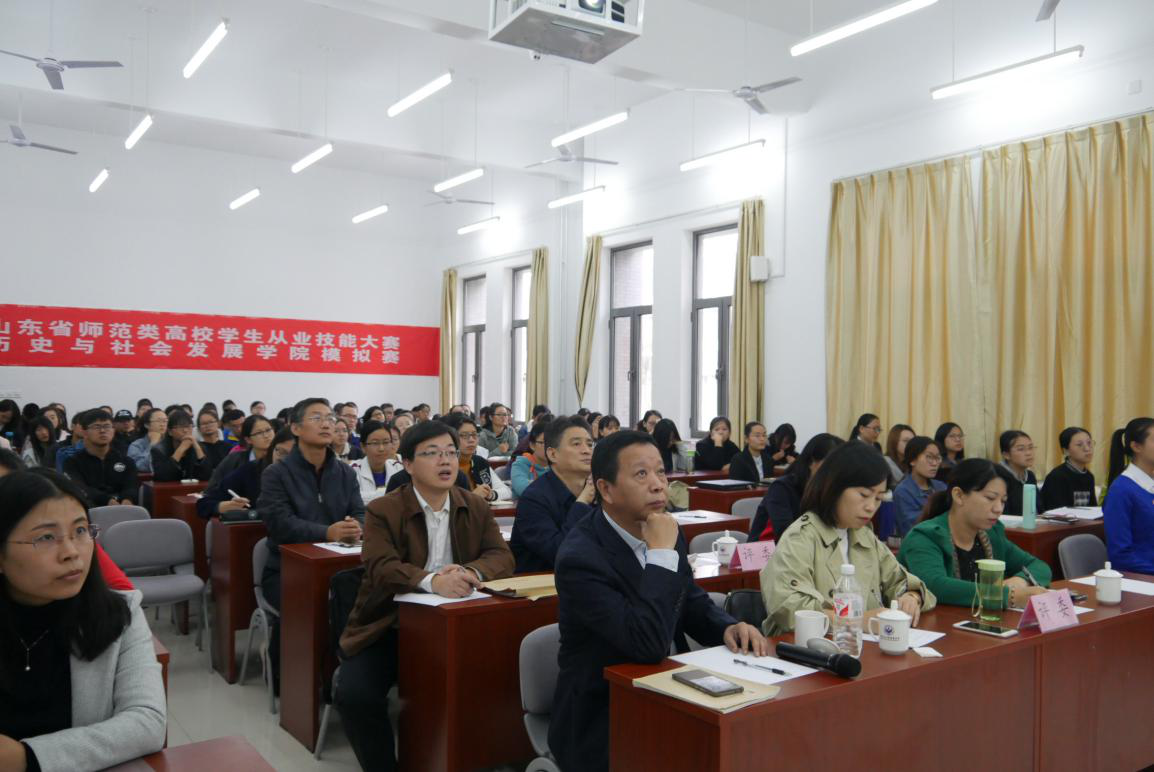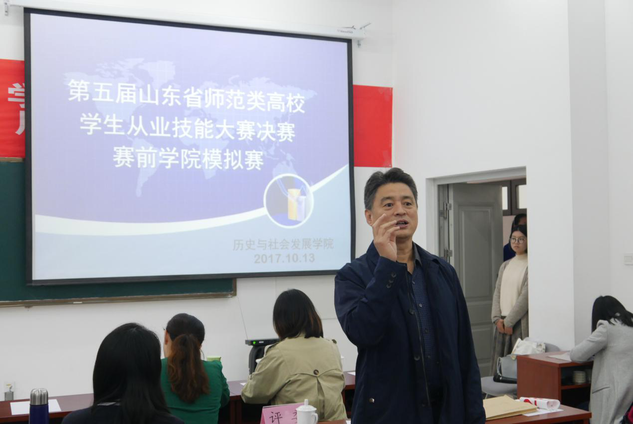 为进一步提升师范生教学技能、实践能力和综合素质,10月13日,历史与社会发展学院于长清湖校区历社学院综合楼107教室举办第五届山东省师范类高校学生从业技能决赛赛前学院模拟赛。校教务处副处长刘浩副教授,学院党委副书记颜春杰副教授,校教务处教学督导科科长丁同楼老师,学院历史教师教育中心主任、硕士生导师楼建军副教授,学院学科教学(历史)硕士学位点负责人、硕士生导师仇世林副教授,硕士生导师燕慧博士,山东省实验中学一级教师李明明,济南外国语中学一级教师侯淼出席此次活动并担任评委。百余名学生到场观摩学习。