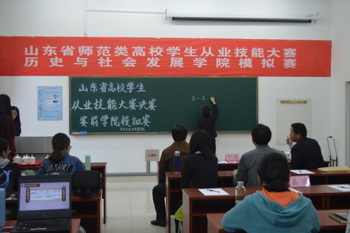 学校教务处、历史与社会发展学院高度重视本次大赛活动,协同组织,认真开展了省级决赛选手的选拔、训练等工作。为了以更好的状态迎接决赛,学院的各部门通力合作,指导教师结合历史学科教学特点,竭尽全力地帮助学生改进教学方法,充分调动学生潜能。此外,校外硕士生导师、济南中学高级教师范蕴涵也全程指导学生进行教学设计和模拟授课,在保证学院模拟赛顺利进行的同时也为参加省教学技能大赛决赛提前奠定了坚实的基础。