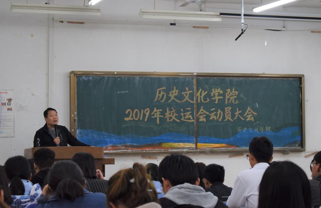 为顺利举办校运动会,妥善安排运动会期间的各项工作,10月17日,历史文化学院于长清湖校区文渊楼C区119教室举办校运动会动员大会。学院党委副书记鲁法军,学生工作办公室主任、团委书记、辅导员魏宁及辅导员郭慧颖、衣晓杰、刘畅出席。本次会议由学生会副主席黄雨奇主持,学院学生会成员、2019级主要班委及运动员参会。