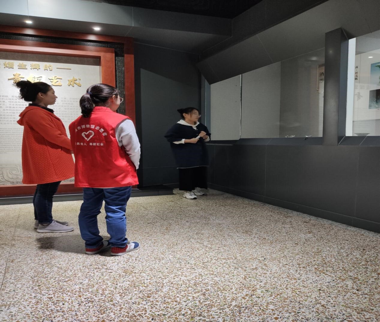 博物馆的藏品是历史的瑰宝,是文化的沉淀,其中不少文物是国内的稀世珍品。为有更多的时间熟悉环境,研究生们早在上午9:00就准时到达博物馆。紧接着,市博物馆讲解员带领研究生们完整地参观了博物馆的四个展厅,并对展厅中展出的文物进行了详细的讲解。经过市博物馆讲解员的讲解,研究生们对山东地区的历史文化形成了具象而深刻的认知。在培训过程中,市博物馆讲解员还从仪容仪表、讲解时的注意事项等方面,结合自身的经历向研究生们一一阐述,并耐心指出研究生们在讲解过程中的不足并给出建议。研究生们仔细聆听、积极提问,她们认真专注的态度得到了市博物馆讲解员的认可,更是吸引了一批前来参观的游客。研究生们用专业的历史文化知识和热情积极的态度为参观的游客提供了一次专业又不失趣味的讲解。最后,五名研究生全部通过考核,加入到市博物馆讲解的队伍之中。