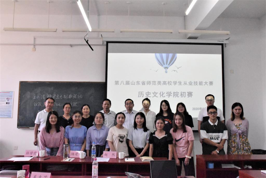 为了提高同学们的教学水平和教学素质,促进学生全面发展,9月6日,历史文化学院在崇德楼320教室举办第八届师范类高校学生从业技能大赛院内选拔赛。历史文化学院副教授、教师教育中心主任楼建军,副教授李晓华,副教授杜学霞,副教授盖志芳,特邀山东师范大学教育硕士合作导师、全国优质课一等奖获得者、中学一级教师赵然老师作为嘉宾出席比赛,部分研究生和部分2017级学生参与本次比赛。