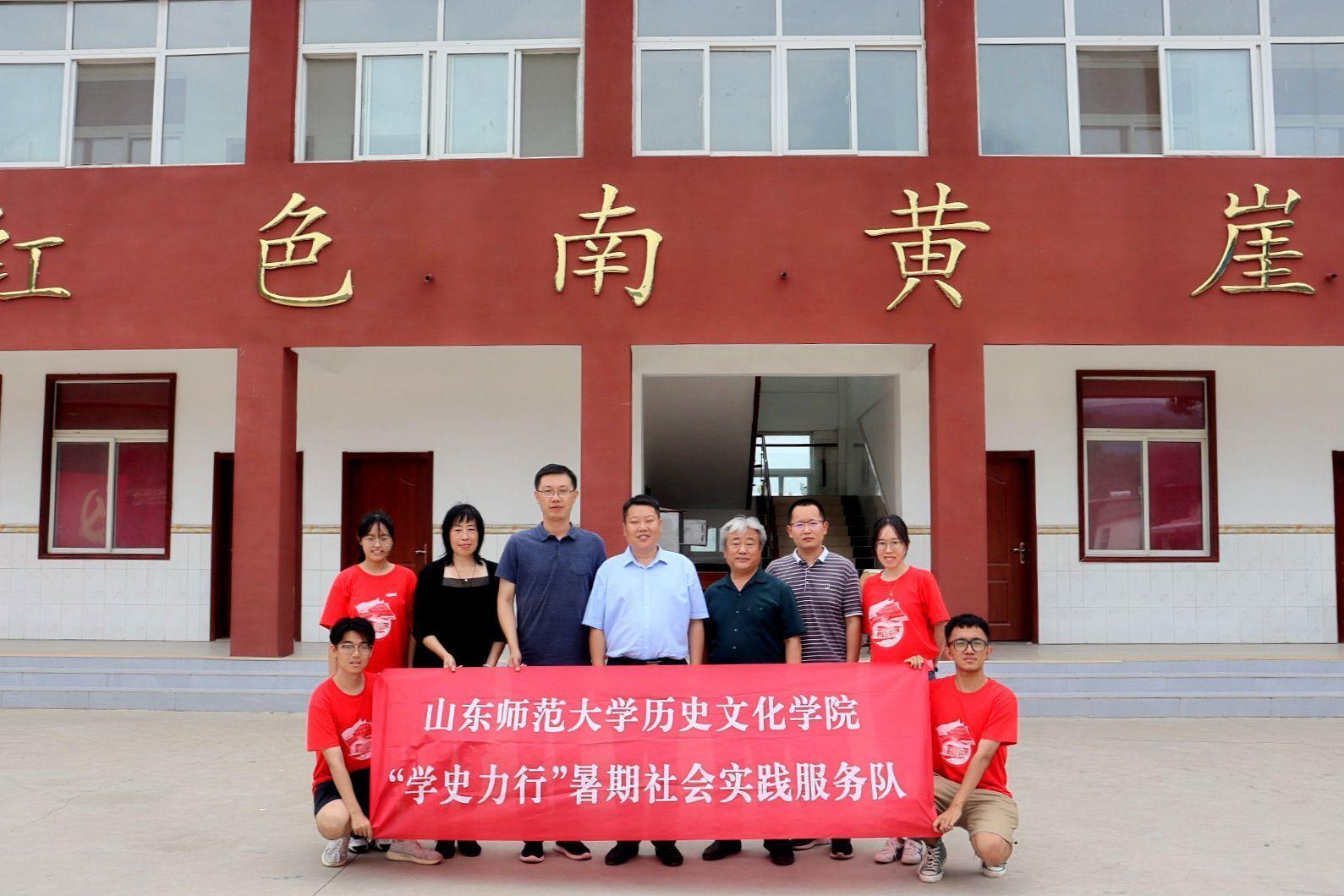 7月11日,山东师范大学历史文化学院社会实践基地揭牌仪式在长清区孝里镇南黄崖村举行。长清区孝里镇党委副书记杨官程、文旅办主任安兴柱、汇鑫文化旅游发展有限公司董事长张雅丽出席仪式,学院党委副书记鲁法军、青年教师闫福新、辅导员蒋艺及全体社会实践服务队队员参加揭牌仪式。