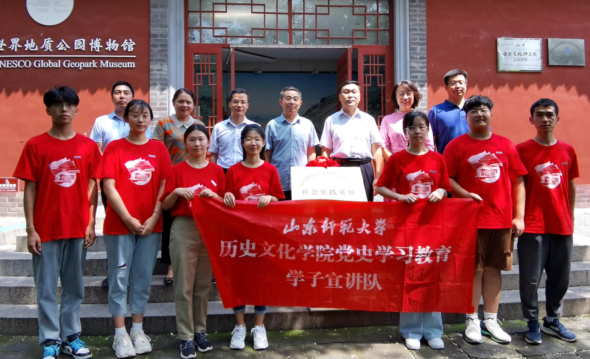 7月23日,历史文化学院与泰安市博物馆共建优秀传统文化研究传承服务实践基地揭牌仪式在泰安市博物馆举行。历史文化学院党委书记刘新生,泰安市博物馆馆长刘玉沛共同为实践基地揭牌。学院辅导员老师和党史学习教育学子宣讲队部分成员参加活动。