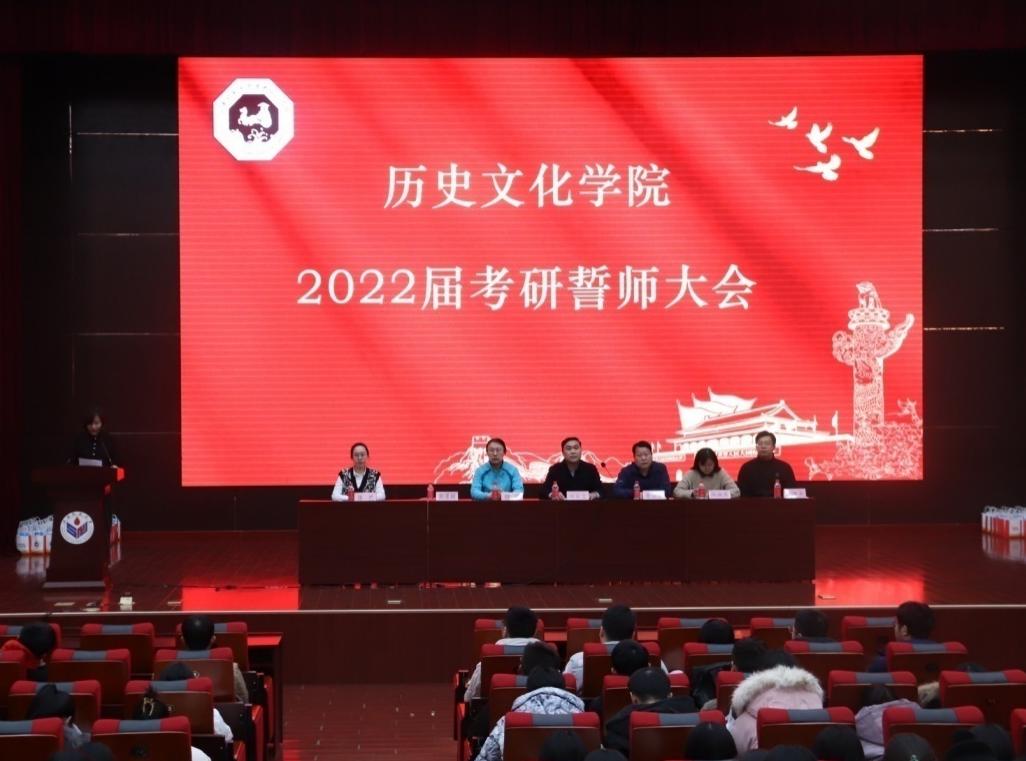为进一步激发考研学生斗志,增强学生考研信心,12月20日下午,历史文化学院于树蕙堂第一报告厅顺利开展2022届考研誓师大会。历史文化学院党委书记刘新生,党委副书记鲁法军,学生工作处办公室主任、团委书记魏宁,2018级部分同学参加会议。会议由2018级辅导员郭慧颖主持。