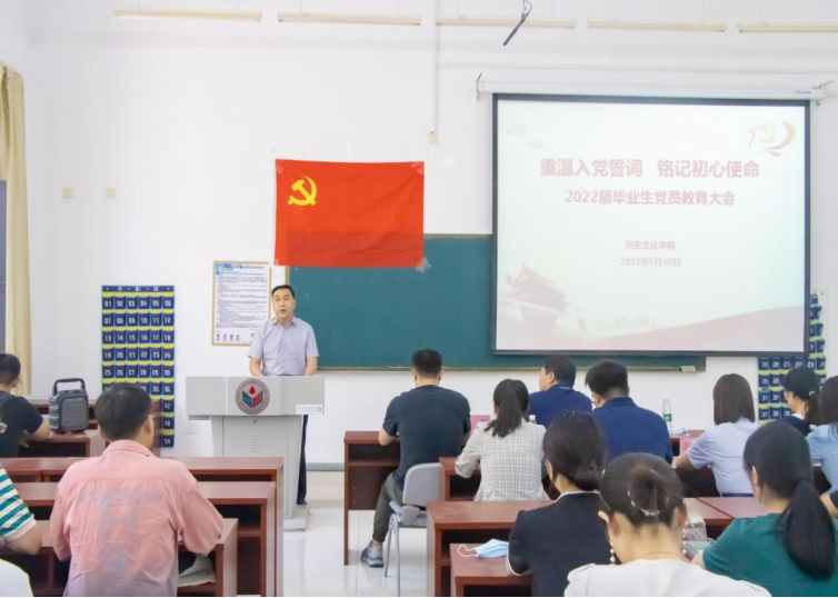 5月30日,历史文化学院在长清湖校区崇德楼116教室召开“重温入党誓词,铭记初心使命”2022届毕业生党员教育大会。学院党委书记刘新生,党委副书记鲁法军,学院学生工作办公室主任、团委书记魏宁,学院党政办公室负责人、全体辅导员与2022届全体毕业生党员出席会议。会议由鲁法军主持。