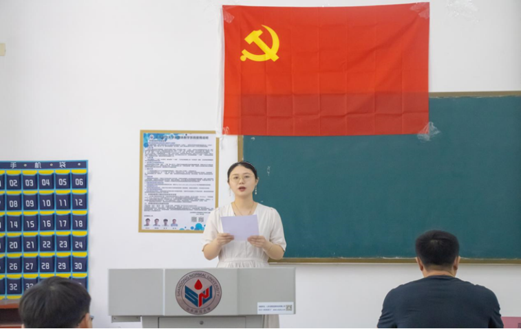 会议在庄严雄壮的国际歌声中拉开帷幕,与会党员师生举起右手,面对党旗,庄严宣誓。