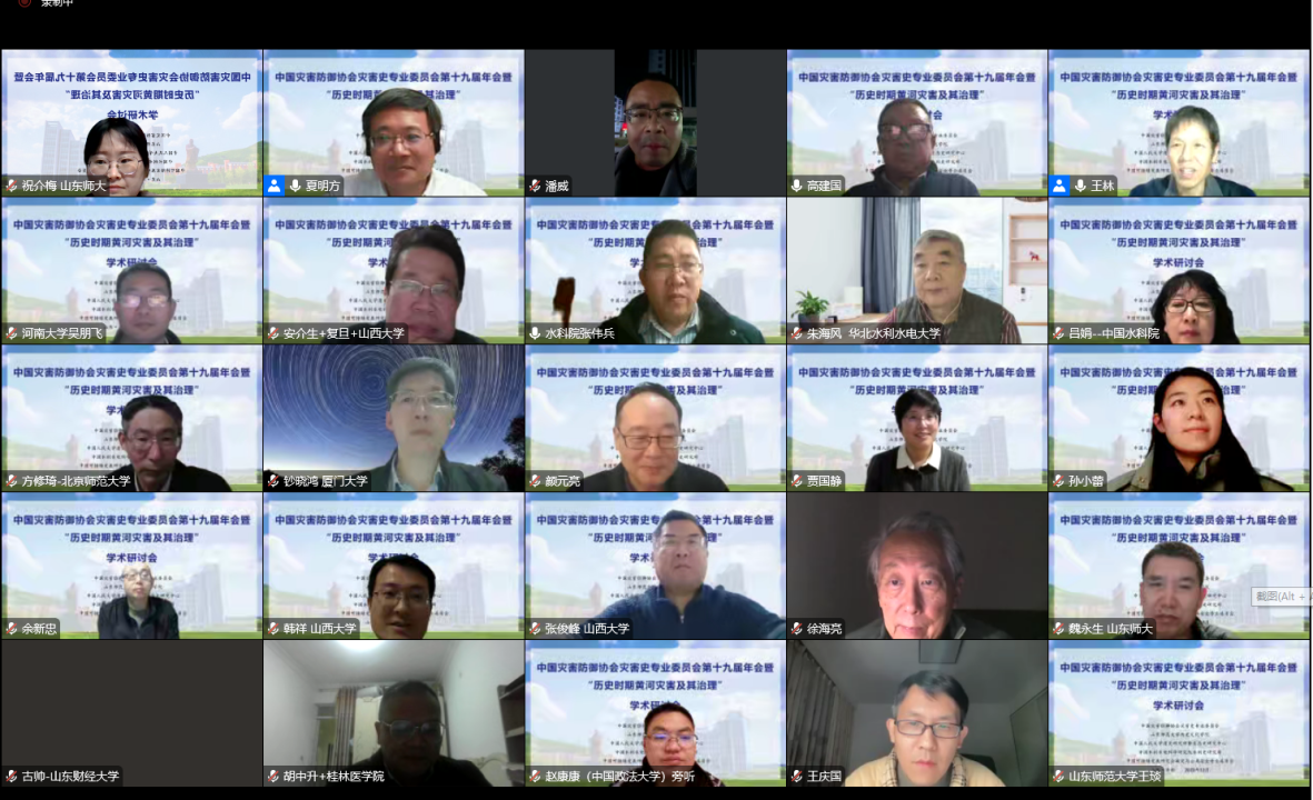 12月3-4日,由山东师范大学历史文化学院承办的中国灾害防御协会灾害史专业委员会第十九届年会暨“历史时期黄河灾害及其治理”学术研讨会以线上线下相结合的方式成功召开。此次会议由中国灾害防御协会灾害史专业委员会、中国人民大学清史研究所、中国水利水电科学研究院水利史研究所、中国可持续发展研究会减灾与公共安全专业委员会协办。山东师范大学党委常委、副校长张茂聪教授,中国灾害防御协会秘书长唐豹先生,中国灾害防御协会灾害史专业委员会副主任、山西大学副校长郝平教授,中国人民大学历史学院院长朱浒教授出席大会开幕式并致辞,中国灾害防御协会灾害史专业委员会秘书长赵晓华教授作年度工作报告。大会开幕式由山东师范大学历史文化学院党委书记刘新生主持。