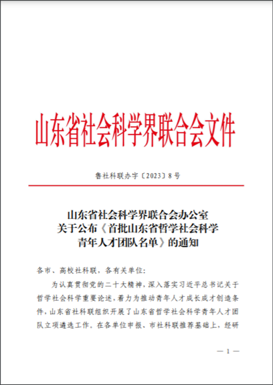 近日,山东省社会科学界联合会公布了首批“山东省哲学社会科学青年人才团队”名单,我院“沂蒙精神与山东红色文化研究创新团队”成功入选。本次全省共立项25个团队,这是学校在高层次团队建设上取得的又一进展。