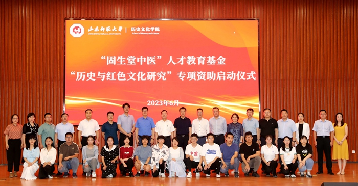 6月30日上午,“固生堂中医”人才教育基金“历史与红色文化研究”专项资助启动仪式在长清湖校区文昌楼105报告厅举行。山东师范大学副校长许双庆,深圳市福田区一级巡视员李振河,香港国际卫视副总裁钱国华,固生堂中医连锁管理集团副总裁王少敏出席仪式。山东师范大学对外合作发展办公室、历史文化学院、新闻与传媒学院等有关单位负责同志,固生堂医联体工作部有关负责人参加启动仪式。仪式由历史文化学院党委书记刘新生主持。