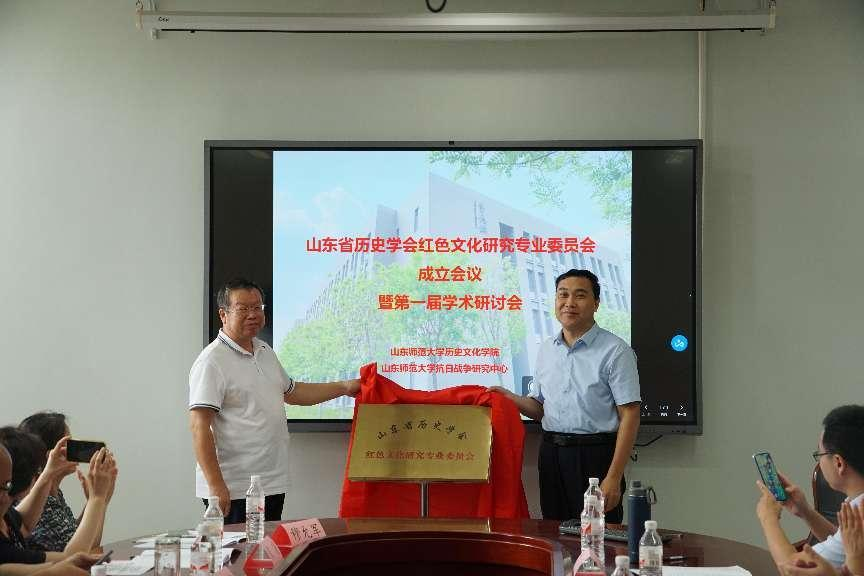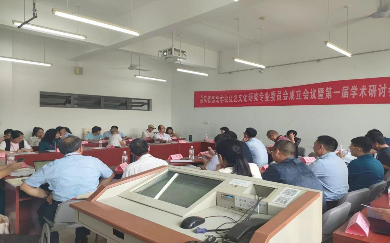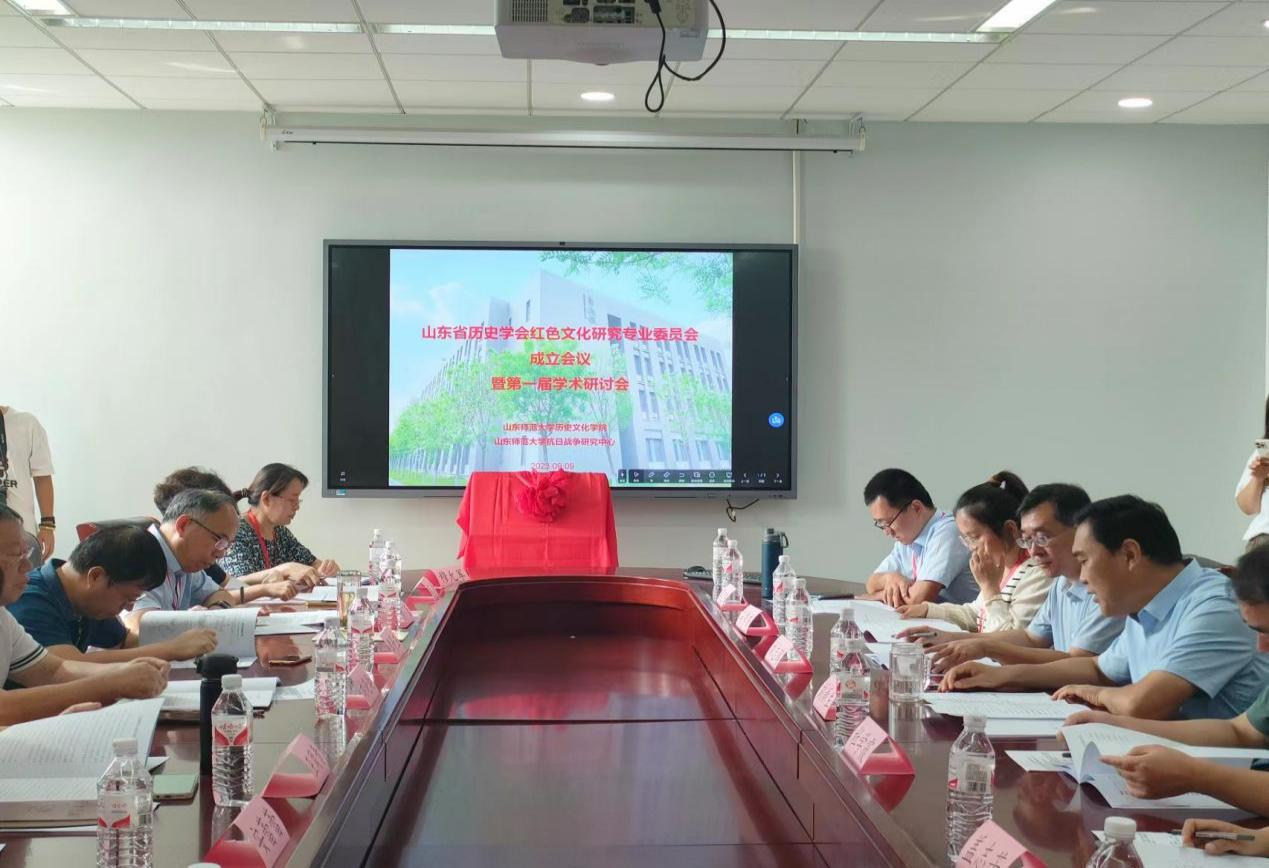 2023年9月9日,山东省历史学会红色文化研究专业委员会成立会议暨第一届学术研讨会在山东师范大学长清湖校区崇德楼成功举办。山东省历史学会、山东师范大学、山东大学、山东社会科学院、中共山东省委党史研究院、中共山东省委党校、山东省文化和旅游厅、山东省图书馆、山东省博物馆、中国海洋大学、齐鲁工业大学、山东建筑大学、临沂大学、济南艺术学校等政府机构、高校科研院所的领导或专家,以及沂源红色文化研究会等民间学者40余人参加了此次会议。