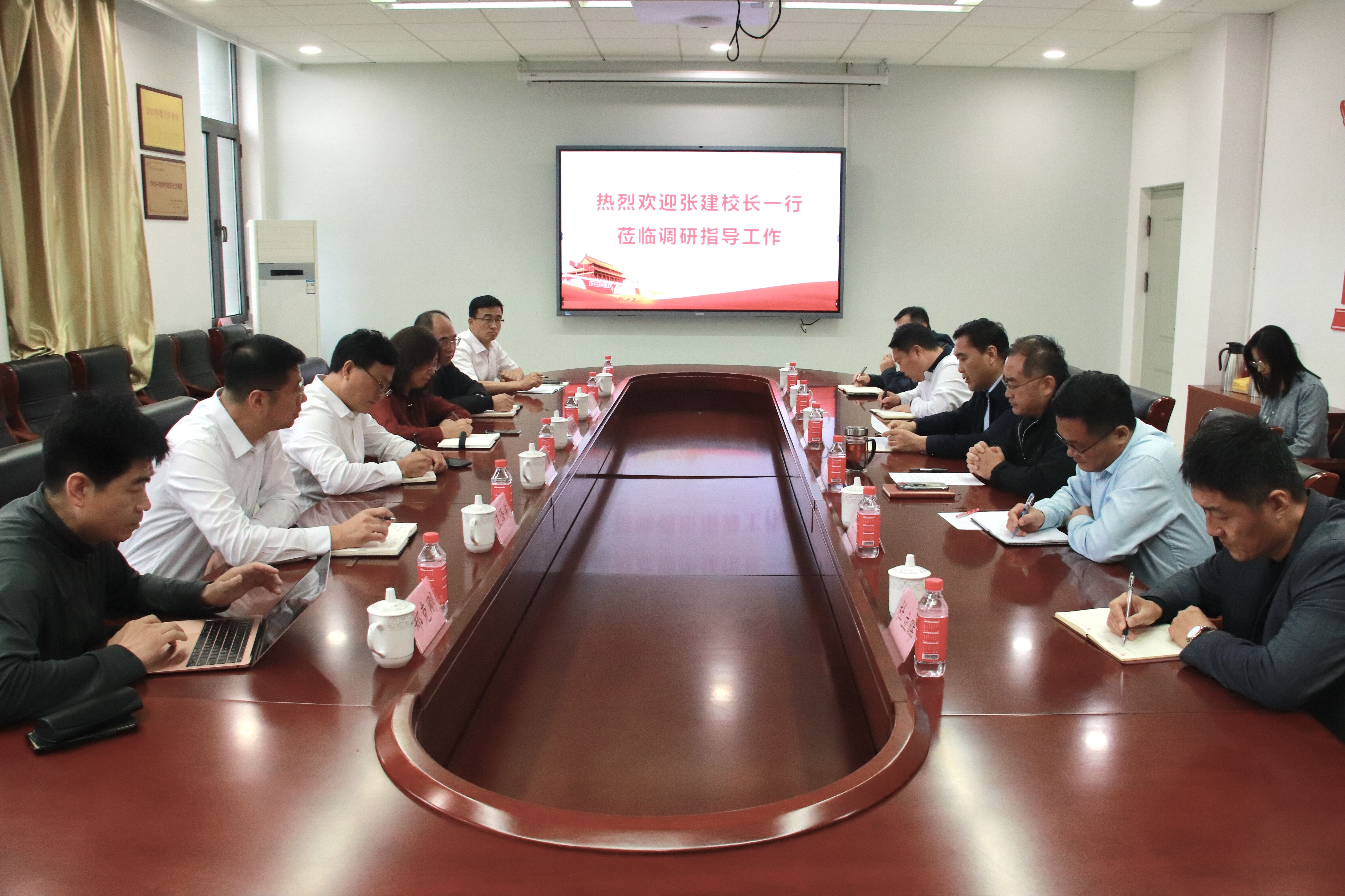 刘新生代表历史文化学院对张建校长一行的到来表示热烈欢迎和诚挚感谢,并汇报介绍了学院基本情况和近年来学院在抓党建业务融合助推高质量发展、国家级科研立项、高层次人才培育等方面取得的突出成绩。毛锐就当前学院正在推进的工作、学院建设发展中存在的困难和需求及意见建议作了汇报。