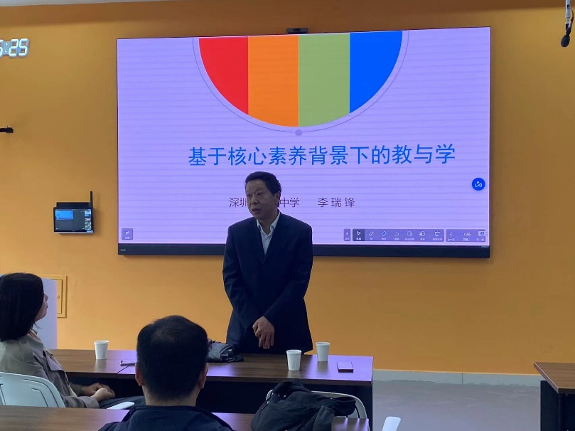 为提升同学们教育教学技能,更好地了解中学历史课堂教育教学工作,10月19日上午,历史文化学院于山东师范大学教师教育实训中心成功举办了“如何准备一节初中历史课”和“基于核心素养背景下的教与学”主题讲座。本次讲座分为两场,由中学高级教师、深圳市宝安区实验学校(集团)学生发展中心主任、宝安实验学校德育主任黄波和中学高级教师、深圳市松岗中学副校长、深圳市名教师工作室主持人李瑞锋分别主讲。本次活动由历史文化学院院长助理刘志鹏教授主持,学院教师教育中心主任楼建军教授和燕慧副教授出席活动,2021级、2023级学科教学(历史)专业硕士生参加。