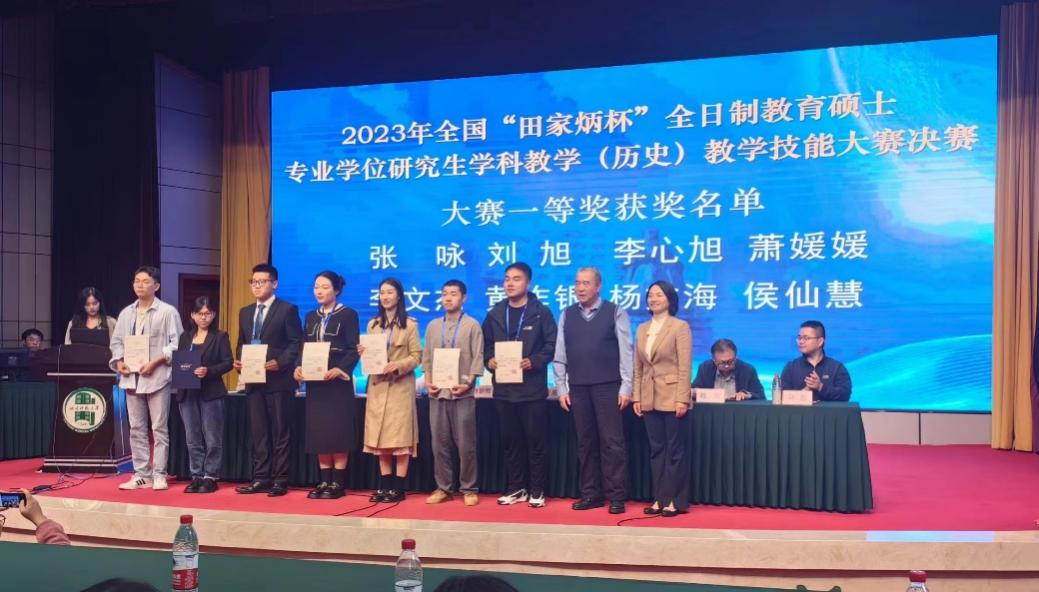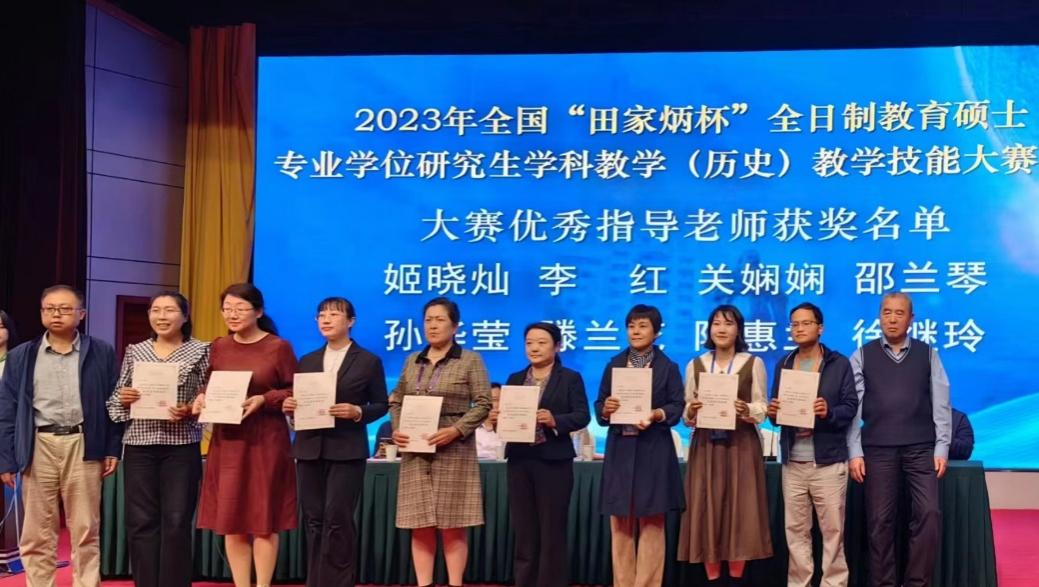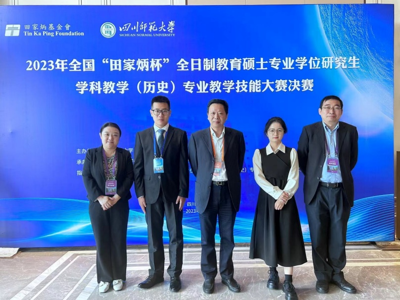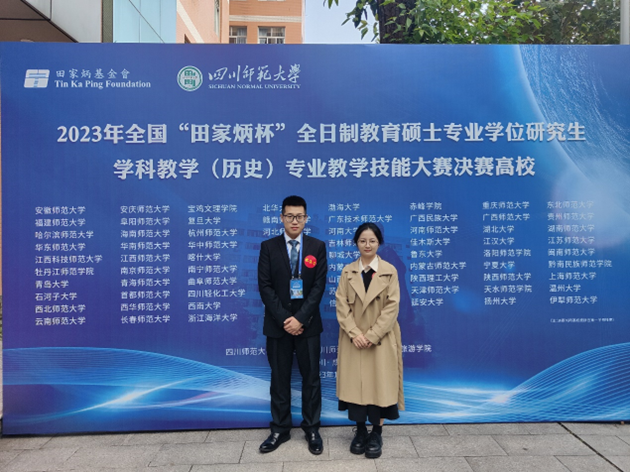 2023年10月20日至23日,全国“田家炳杯”全日制教育硕士专业学位研究生学科教学(历史)教学技能大赛决赛在四川师范大学成功举办。此次比赛汇集了来自全国76所高校的152名参赛选手及各校指导教师。我校派出2022级学科教学(历史)专业研究生杨文海、张雪伊参赛,并由历史文化学院教师教学发展中心主任楼建军教授担任领队,历史文化学院世界史系副主任杨蕾副教授与校外兼职硕士生导师、中学一级教师赵然担任现场指导教师。经过激烈角逐,杨文海获大赛一等奖,张雪伊获大赛优秀教学设计奖,历史文化学院教师姬晓灿获“优秀指导教师”称号。