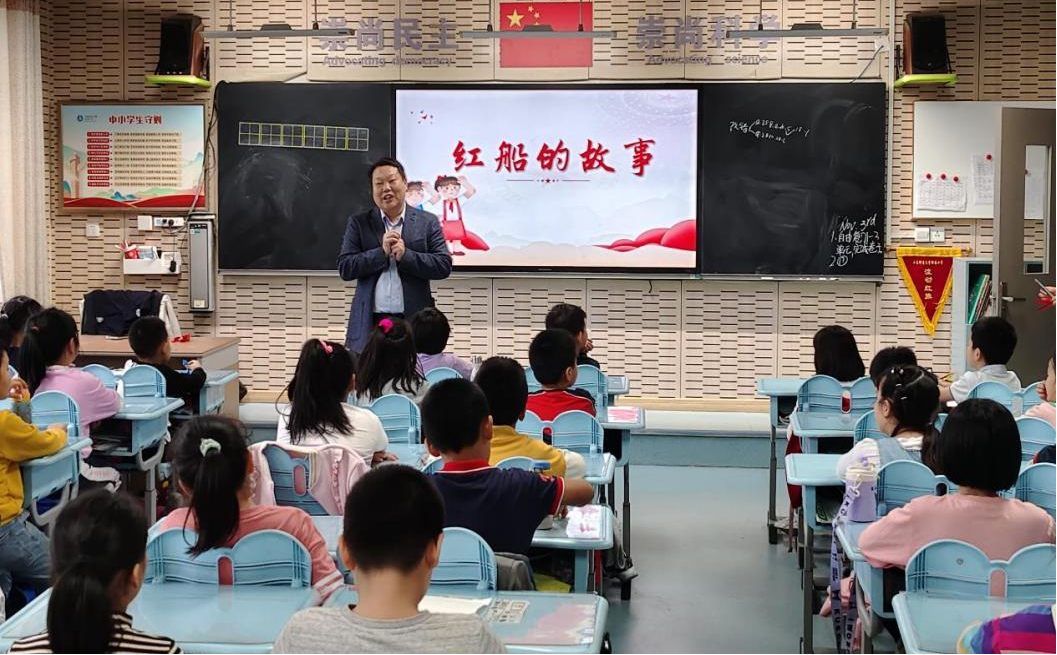 11月3日下午,我院学子宣讲队走进山东师范大学附属小学开展宣讲,宣讲队员党祎超为三年级十班的同学们讲述了一堂以“红船的故事”为题的生动的党史课。学院党委副书记、纪委书记鲁法军参加宣讲活动。