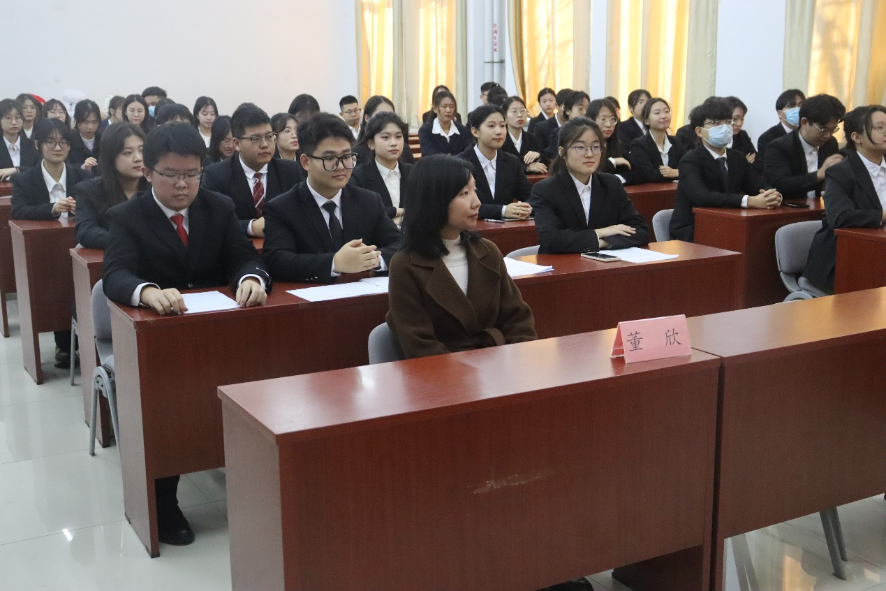 最后,学生工作办公室主任、团委书记董欣老师代表学院向本次大会致闭幕辞。首先,董欣向各位与会代表表示感谢,祝贺本次代表大会胜利结束。她肯定了学生代表大会的成绩,指出学生代表大会作为学生的群众组织,起到了连接学校和学生的桥梁纽带作用,其召开不但对上一年的工作进行了充分总结,更重要的是为接下来的学院工作、学生工作以及群团工作打下了良好基础,勉励各位代表能够充分履行职责,为学院以及学校发展建言献策,作出应有的贡献,使大家享受到更加完美、充盈的大学生活。最后,董欣再次祝贺第四次学生代表大会和第四次研究生代表大会顺利闭幕。
