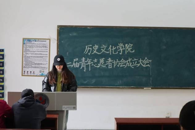 随后,历史文化学院青年志愿者协会会长王煦以及各部门部长上台发言,对青志协成员、职能、分工以及未来规划做出简要介绍。