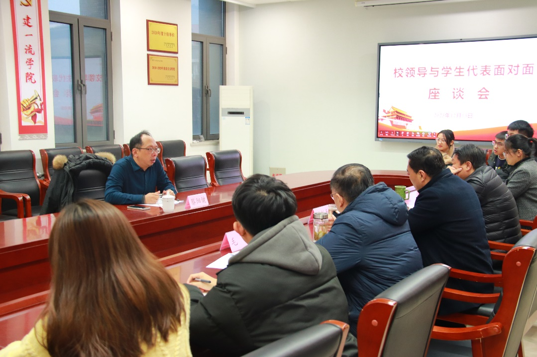 12月13日下午,校党委常委、副校长蔡阳健到历史文化学院召开学生座谈会,与学生代表面对面,进行深入交流,为同学们上了一堂生动的思想政治教育和人生指导课。学院党委书记刘新生,院长毛锐,党委副书记鲁法军,本科生、研究生代表参加座谈会。座谈会由历史文化学院党委书记刘新生主持。
