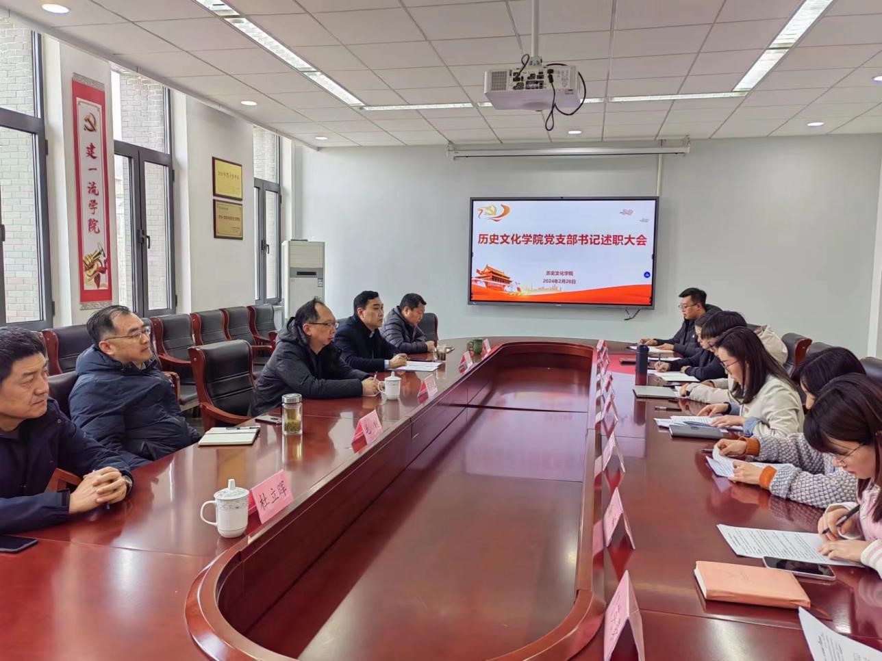 为深入学习贯彻习近平新时代中国特色社会主义思想和党的二十大精神,贯彻落实全面从严治党要求,推动履行全面从严治党第一责任人职责,提升党组织凝聚力和战斗力,2月28日下午,历史文化学院组织召开2023年度党支部书记履行全面从严治党责任和抓党建述职评议工作会议。党委常委、副校长蔡阳健出席并讲话,学院党委委员和各支部书记参加会议。会议由学院党委书记刘新生主持。