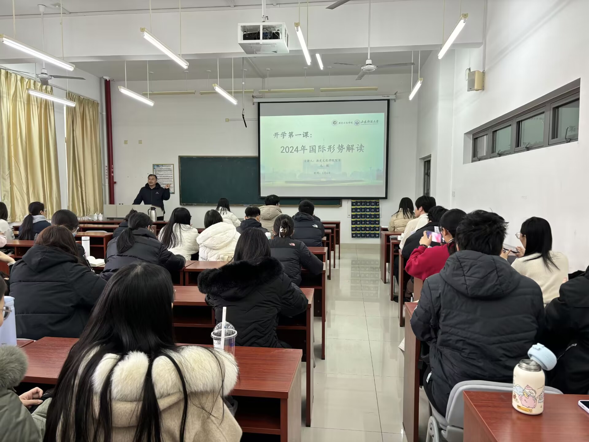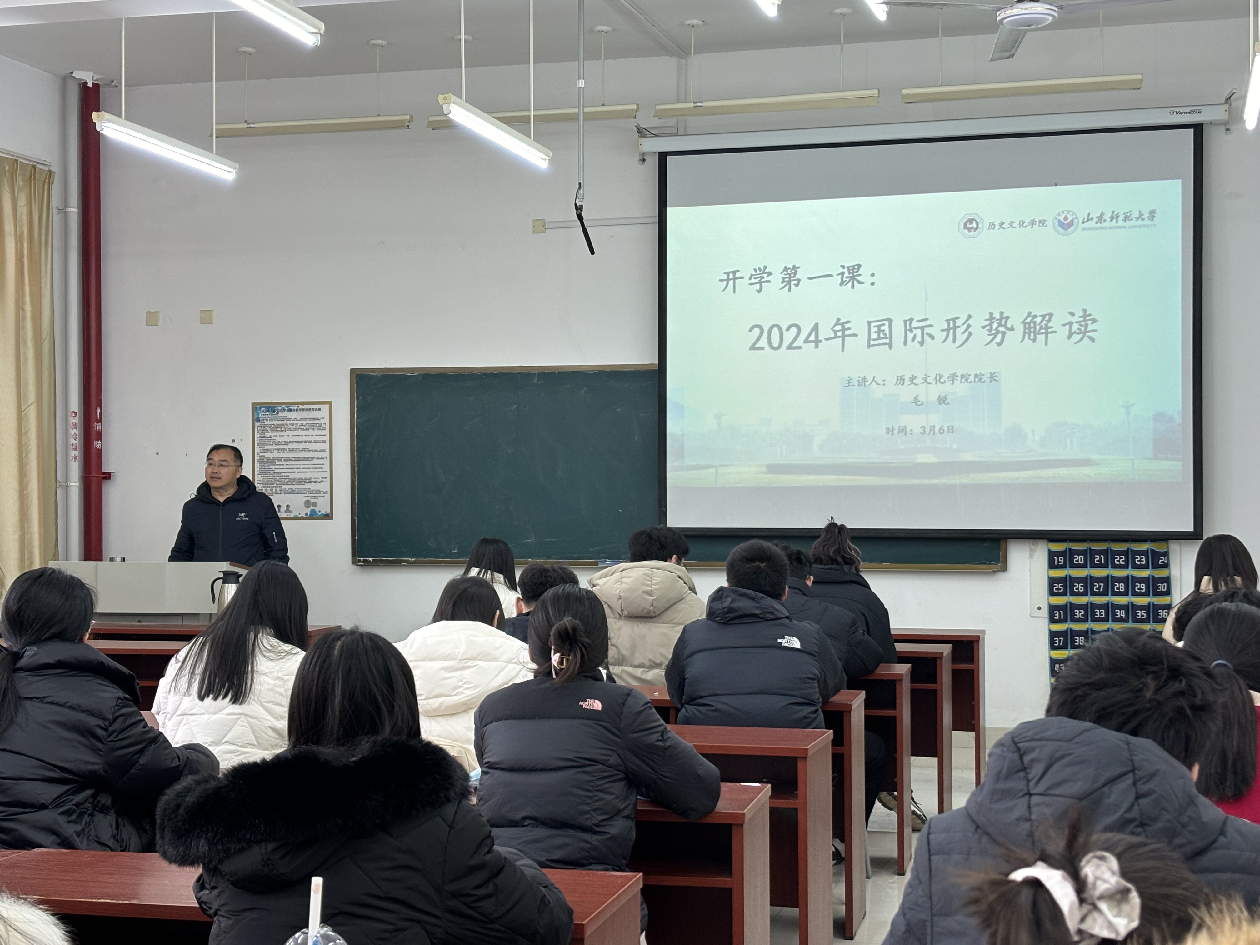 3月6日下午,历史文化学院研究生“开学第一课”活动在长清湖校区崇德楼207教室成功举办。历史文化学院院长、教授、博士生导师毛锐担任主讲人,为同学们作了主题为“2024年国际形势解读”的讲座。整场讲座深入浅出,将国际局势与同学们的人生选择联系在一起,同学们听后受益匪浅。本次活动由研究生辅导员刘畅主持,22、23级80名研究生参加。