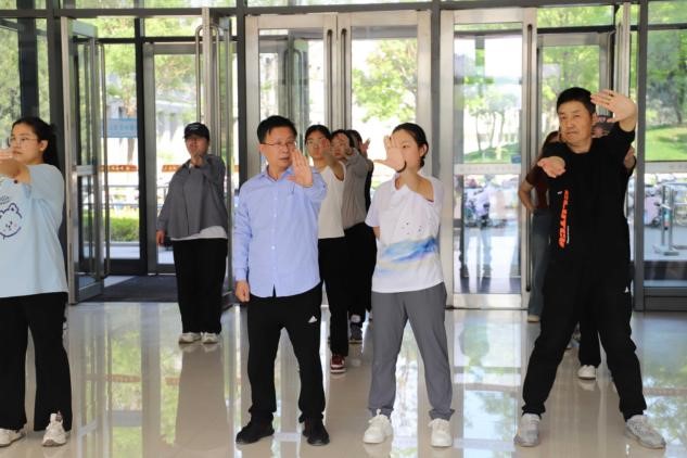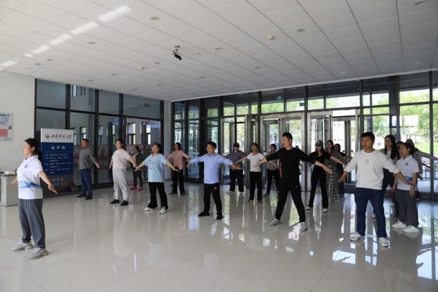 四月的校园处处春意,生机盎然。在一派融融春光里,为加强体育建设,提高师生的健康水平,2024年4月18日下午历史文化学院特邀请山东师范大学研究生导学健身服务队,在崇德楼大厅进行八段锦教学活动,我院研究生和老师们积极参加。