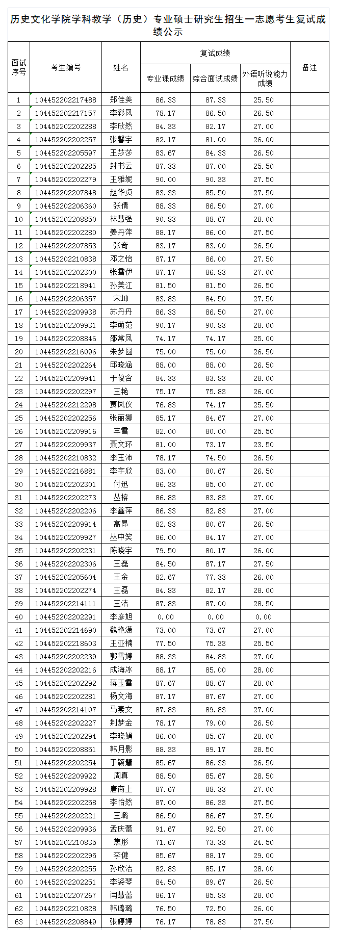 历史文化学院学科教学(历史)专业硕士研究生招生一志愿考生复试成绩公示