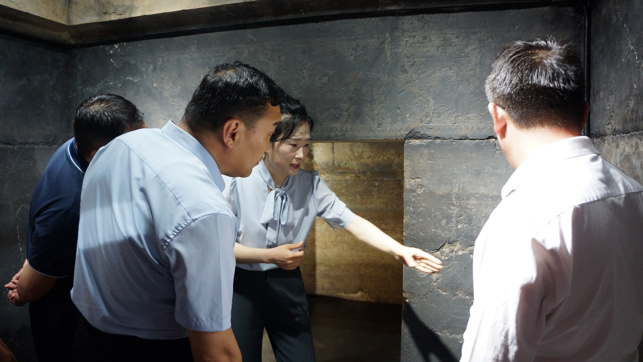 图为师生一行和沂南县文旅局有关领导共同参观一号墓室 赵倩琳 摄
