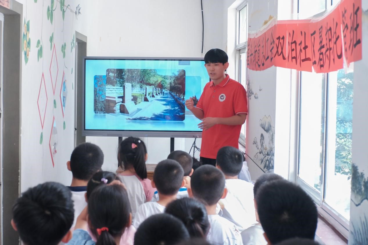 离开郭永怀纪念馆,队员们以传承永怀精神红色基因为使命,来到了双泊社区未成年人实践基地,为当地的少年儿童展开以“史话齐鲁精神,传承红色基因”为主题的宣讲活动。队员们以孔庆三等三位齐鲁革命先烈为主要线索,为少年儿童树立起正确的爱国主义价值观,激励着年轻一代为国家的繁荣富强而努力。