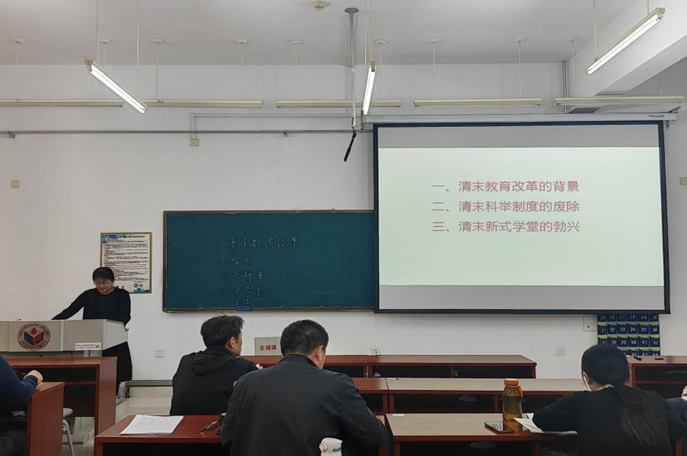 祝介梅老师以“清末新政的教育改革”为题,她史料结合,通过精彩互动和清晰板书,向大家介绍了科举对中国社会的影响。最后她总结新政的教育改革标志着传统教育向近代教育的转型。同时,她向大家推荐延伸阅读书籍以及相关论文。