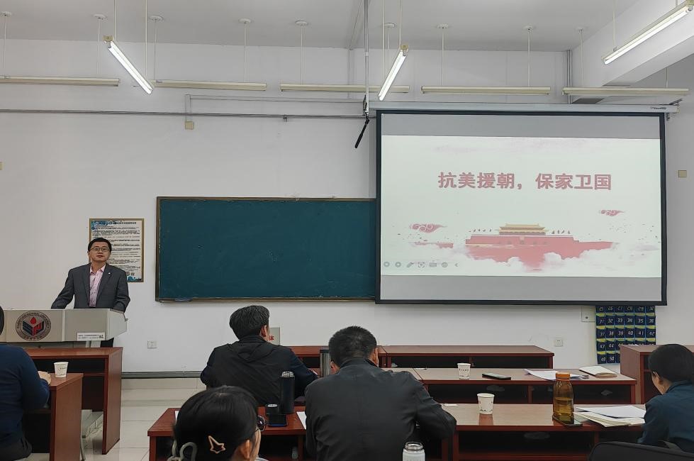 高志伟老师以“抗美援朝,保家卫国”为题进行展示,他首先系统阐述了抗美援朝的起因、经过和结果,并通过大量历史照片向大家还原朝鲜战争的真实场景,运用丰富的史料呈现抗美援朝战场上志愿军作战条件艰苦,说明战争胜利的重要意义。