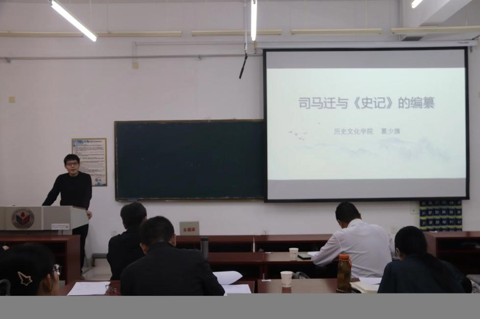 葛少旗老师以 “司马迁与《史记》的编纂”为题,首先以《史记》悠久的先世传承开篇,逻辑分明,条理清晰。又通过讲述历史故事和历史材料相结合的方式介绍了司马迁的传奇一生,语言生动,内容丰富,引人入胜。