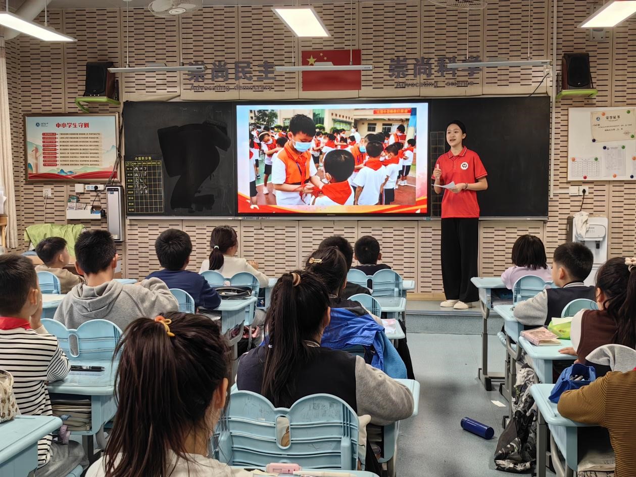 这是我院学子宣讲队本学期的第3次宣讲。小朋友们在课堂上认真听讲,踊跃发言。宣讲队员们从儿童的认知水平出发,深化了学生们对少先队历史的了解,增强了青少年的爱国主义教育,牢固树立永远跟党走的决心。