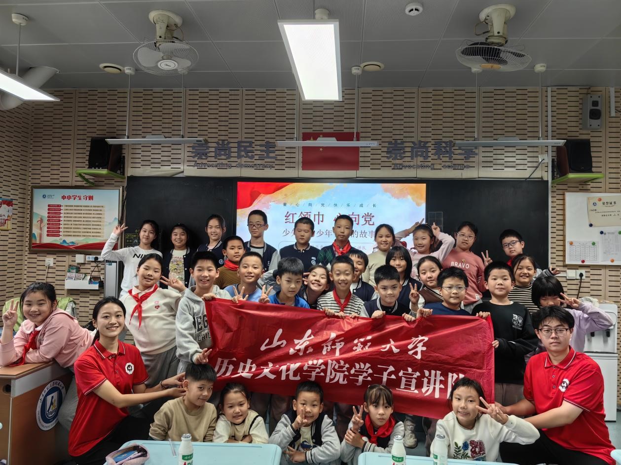 为弘扬少年英雄故事,厚植爱国爱党情怀,10月30日下午,我院学子宣讲队走进山东师范大学附属小学开展了《红领巾,心向党——少先队与少年英雄的故事》主题宣讲,宣讲队员尹凌波为四年级的同学们讲述了一堂声情并茂的党史课。学院党委副书记、纪委书记鲁法军参加活动。