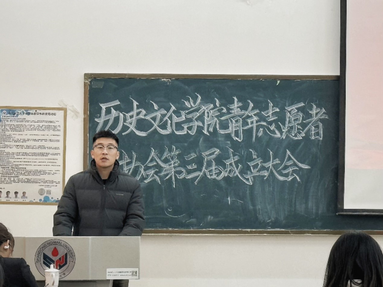 11月28日中午,山东师范大学历史文化学院第三届青年志愿者协会成立大会在崇德楼116教室举行。青年志愿者协会分管老师于一凡受邀出席会议,历史文化学院青年志愿者协会全体成员参会。