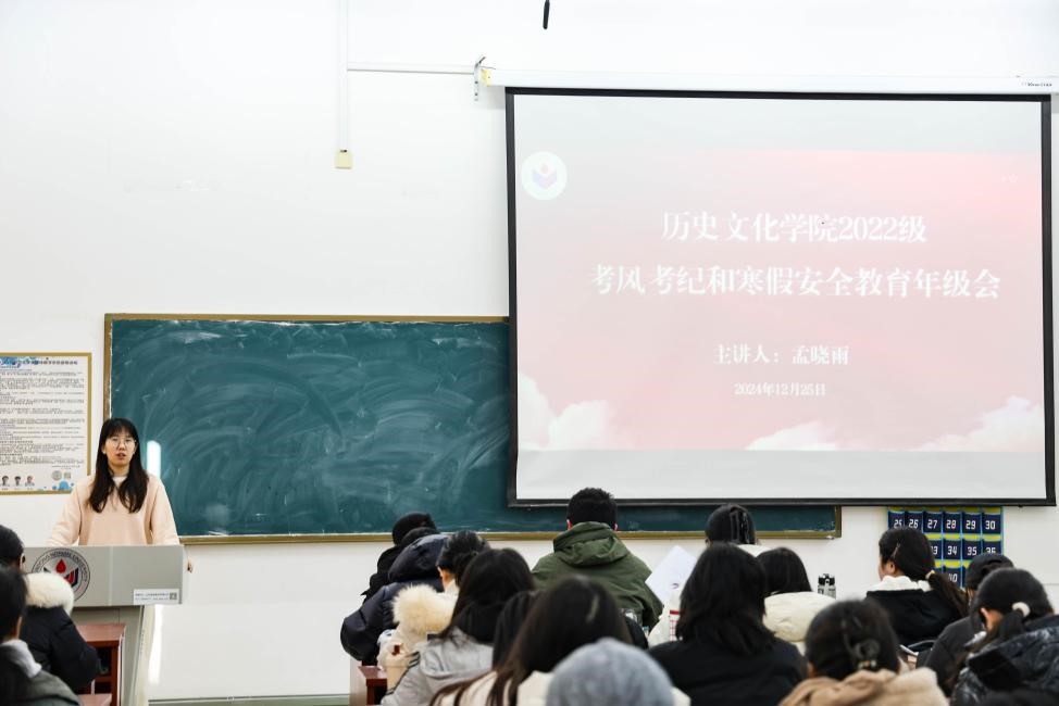 为进一步加强考风考纪教育,筑牢同学们的诚信考试意识,端正学习与考试态度,12月25日至12月27日,历史文化学院考风考纪暨假期安全教育年级会分别召开。会议由各年级辅导员主持,学院在校全体本科生参加。