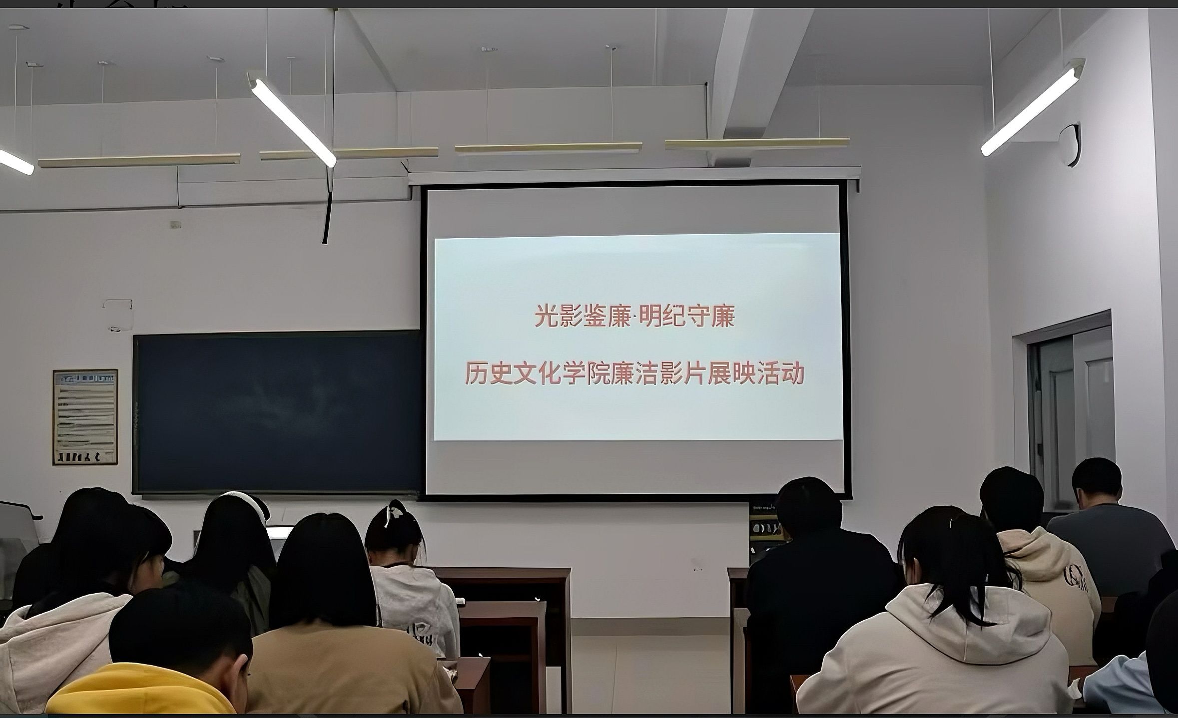 为深入推进历史文化学院廉洁文化建设,强化学生廉洁意识,筑牢拒腐防变思想防线,历史文化学院于2025年3月24日成功举办“光影鉴廉·明纪守廉”廉洁电影展映活动。本次活动由学院青年媒体中心、小影院社团联合举办,历史文化学院2024级全体学生参加。
