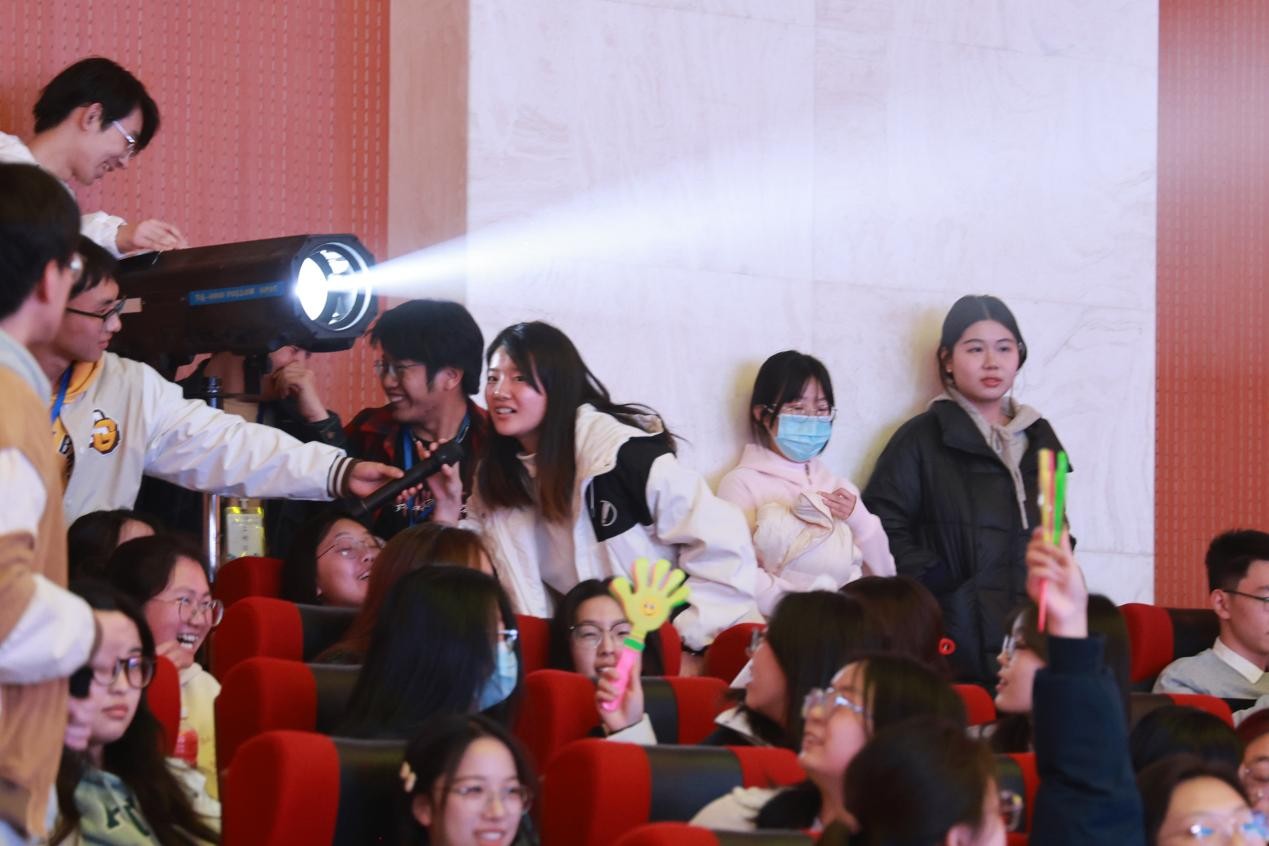 随着精彩合唱环节的落幕,赛事旋即转入高潮迭起的互动环节——金曲竞猜与剧名抢答。同学们展开脑力激荡,每当经典旋律响起或标志性剧照再现,观众席便爆发出雷鸣般的喝彩声,整个会场化作跃动的声浪海洋。