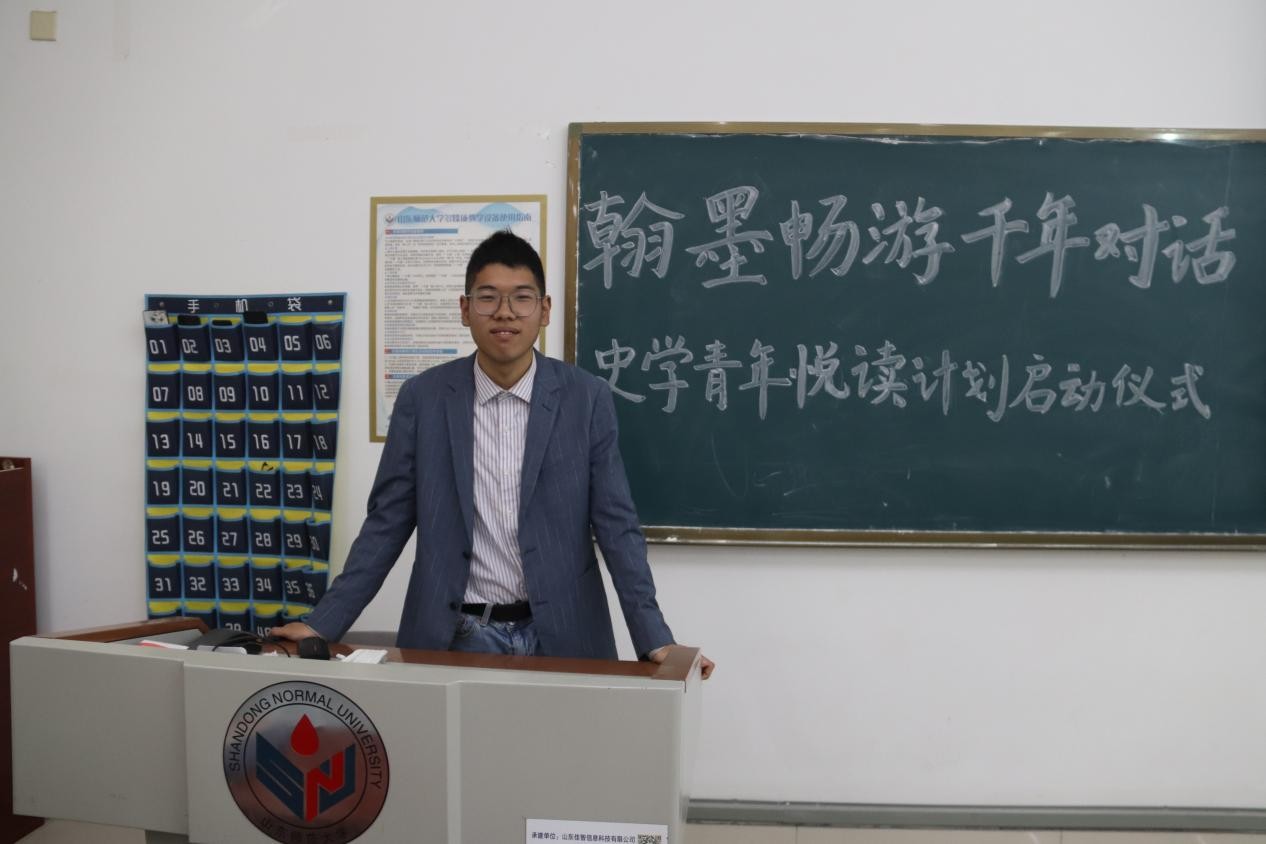 最后,学生代表陈迦南上台分享自己的读书心得。他认为,阅读历史书籍能够让我们清晰地看到人类社会的发展规律和演变趋势。通过广泛阅读史学经典,可以极大地拓宽我们的视野,全方位提升历史学素养,更重要的是,当我们在生活中遭遇形形色色的问题时,能够从历史的智慧中汲取力量,以更加从容不迫、理性客观的态度去分析和应对。此外,他向在场同学分享个人的读书方法,如问题导向阅读法、兴趣阅读法、标注阅读法等,为同学们提供了宝贵的借鉴经验。