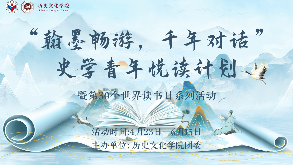 山东师范大学历史文化学院推出“翰墨畅游,千年对话”史学青年悦读计划,旨在深度培养学生阅读史学经典的习惯,拓宽学生的历史视野,提升其历史专业素养和综合人文素质;促进学院师生之间的学术交流与思想碰撞,营造浓厚的学术氛围,激发学生的学术兴趣和创新思维,培养学生的团队合作精神和表达能力。活动面向学院23、24级在校本科生及研究生,自第10周(4月23日世界读书日)起至第16周开展,包含两大核心板块:文本精读活动与佳书荐赏活动。