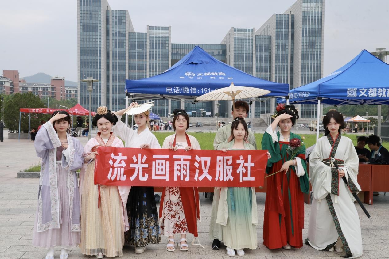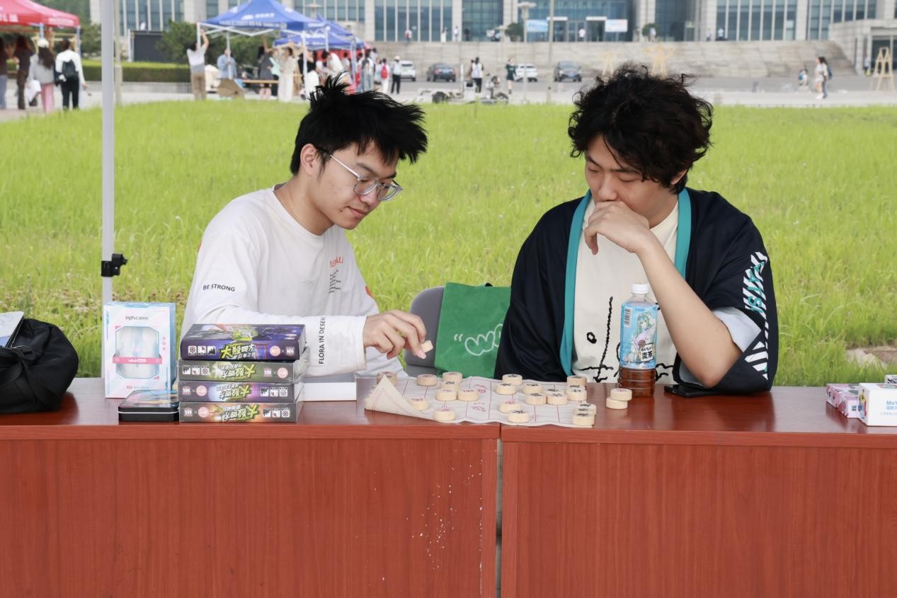 活动现场,麒麟学社以传承历史文化为己任,通过“投壶”这一传统游戏,让参与者在箭矢起落间感受古代雅趣;趣味猜典故环节更是将历史知识融入其中,以轻松活泼的方式激发同学们对历史的探索热情,在古今对话中厚植文化底蕴。桌游棋牌社以象棋博弈与趣味桌游为载体,棋盘上楚河汉界硝烟起,思维碰撞间尽显策略智慧;桌游世界精彩纷呈,同学们在协作与竞技中,锻炼逻辑思维,增进友谊交流。流光画雨汉服社的成员们身着精美汉服,衣袂翩跹,通过静态展示与动态演绎,将汉服的华美形制与华夏礼仪生动呈现,让大家近距离领略传统服饰文化的独特韵味。