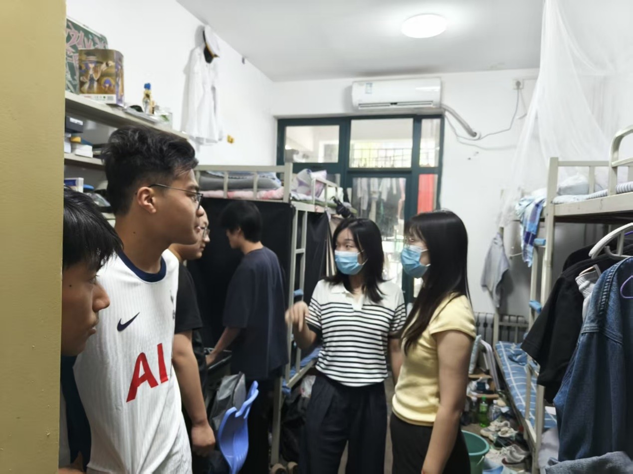 检查当日下午,董欣和孟晓雨首先来到男生宿舍,逐层逐间进行走访。她们认真查看了宿舍地面是否干净、物品摆放是否整齐,着重检查是否存在违规使用大功率电器、私拉乱接电线等安全隐患。检查过程中发现,大部分宿舍能够严格遵守宿舍管理规定,内务整洁,安全意识较强,但仍有个别宿舍存在物品堆放杂乱、出宿舍未锁门等问题。针对这些情况,两位辅导员老师当场对同学们进行了耐心的指导和教育,要求立即整改,及时消除安全隐患。同时,还反复强调宿舍用电安全,叮嘱同学们人走断电,避免意外发生。