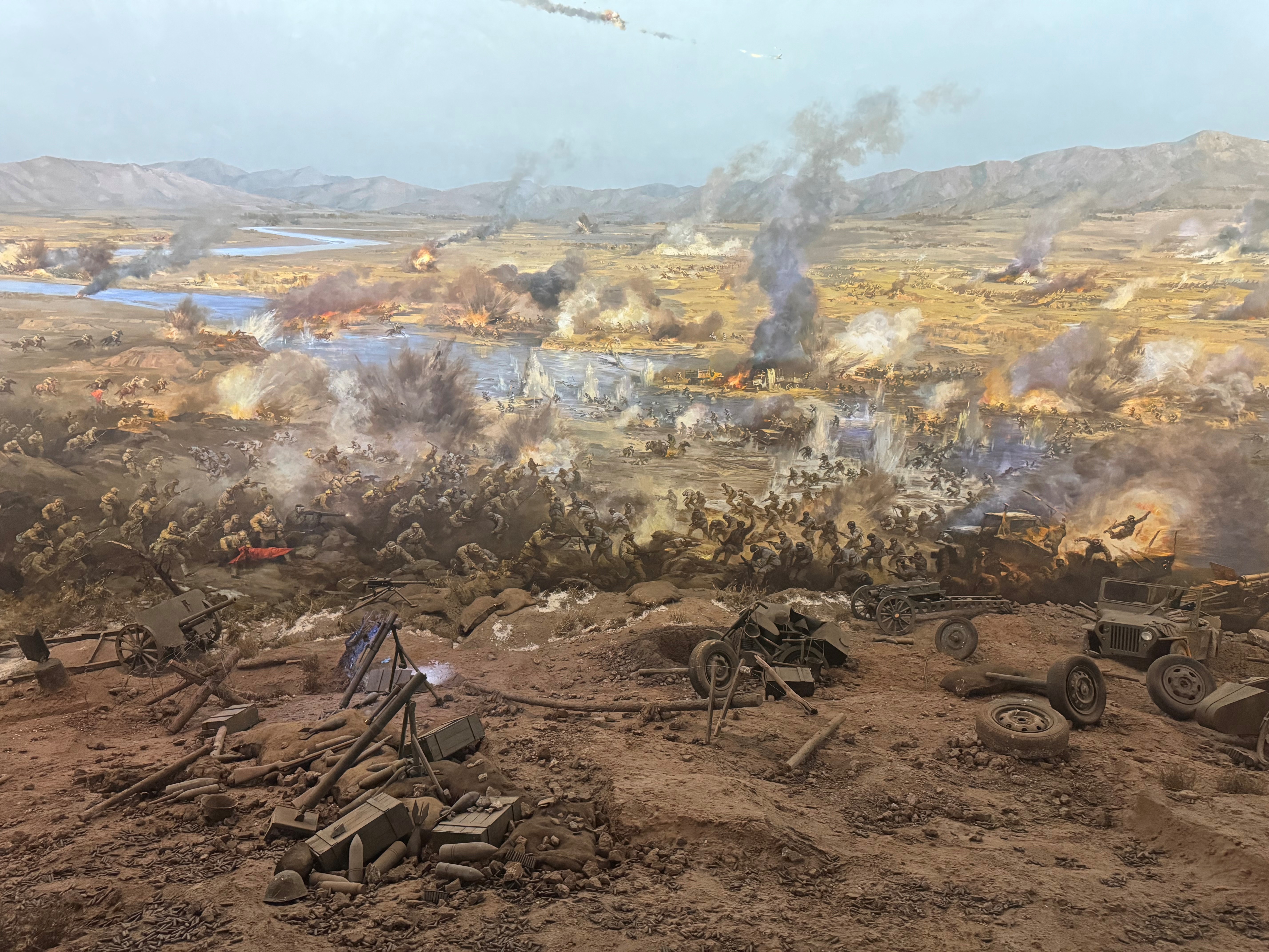 来到莱芜战役全景画馆,映入眼帘的是高17米,周长120米的模拟实战场景大屏。通过声、光、电等现代技术手段与绘画艺术的完美结合,生动再现了莱芜战役的宏大场面,身临其境般感受到战争中的硝烟与战火。