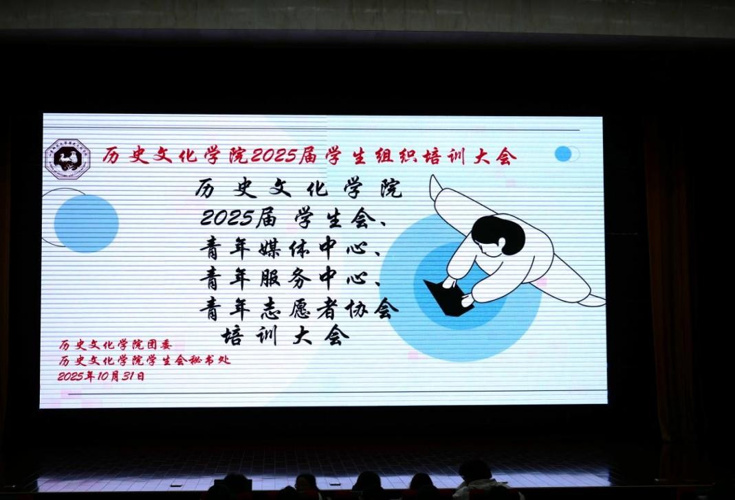 为帮助 2025 届各学生组织团员干部提升能力、赋能成长,促进学生组织高效运转、共绘发展新篇,10 月 31 日晚,历史文化学院于长清湖校区树蕙堂报告厅举办 2025-2026 学年第一学期麒麟团校第三期暨 2025 届学生组织团员干部培训会。本期培训由学生会秘书处赵文杰主讲,各学生组织全体新团员干部参与。