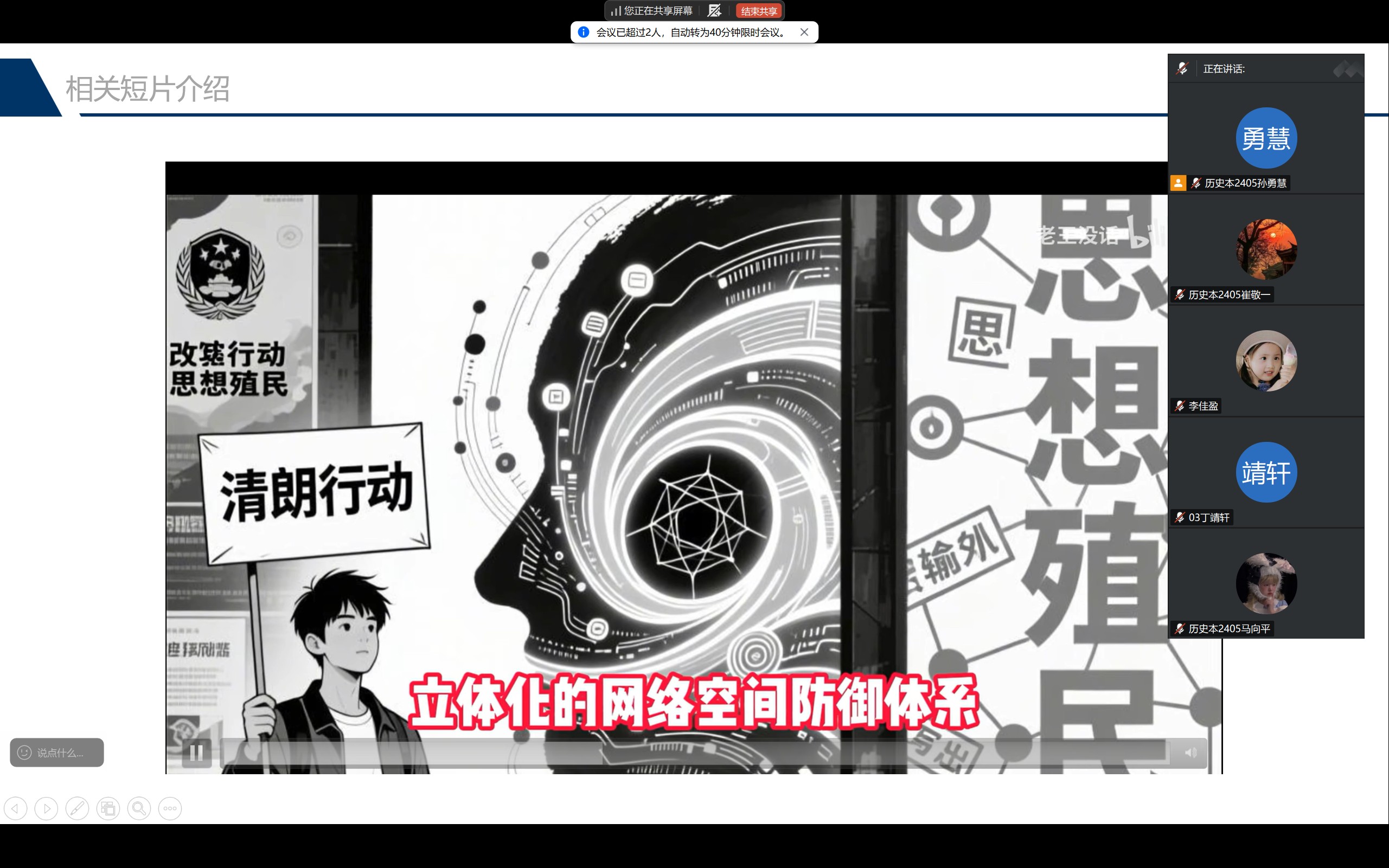 为深入贯彻落实国家网络文明建设的工作要求,积极响应中央网信办“清朗”系列专项活动部署,引导青年学生树立正确网络价值观、强化法治思维。近日,历史文化学院各年级以“清朗网络・从我做起”为主题,同步开展线上线下融合式主题班会,推动网络安全知识深入人心,筑牢校园网络安全防线,凝聚共建清朗网络空间的青春力量。