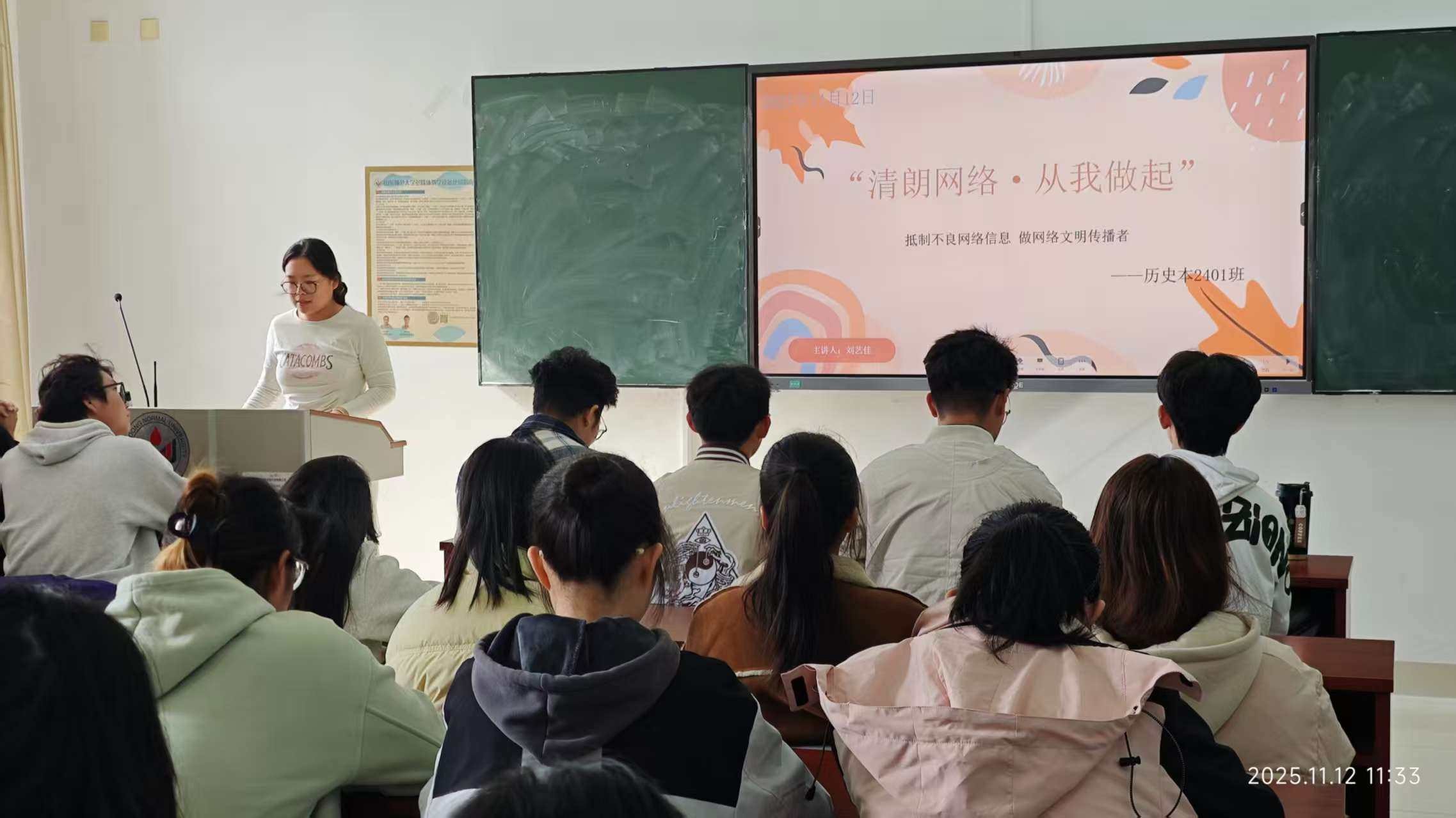 此次主题班会以理论讲解与实践互动相结合的方式,有效提升了青年学生的网络素养与安全防范能力,让“文明上网、依法上网”的理念深植人心。同学们纷纷表示,将积极响应倡议,从规范网络语言、辨别网络信息等小事做起,主动承担青年在网络空间建设中的责任使命,以青春之力共建清朗校园网络环境,为营造健康、文明、和谐的网络生态贡献历史学子的担当。