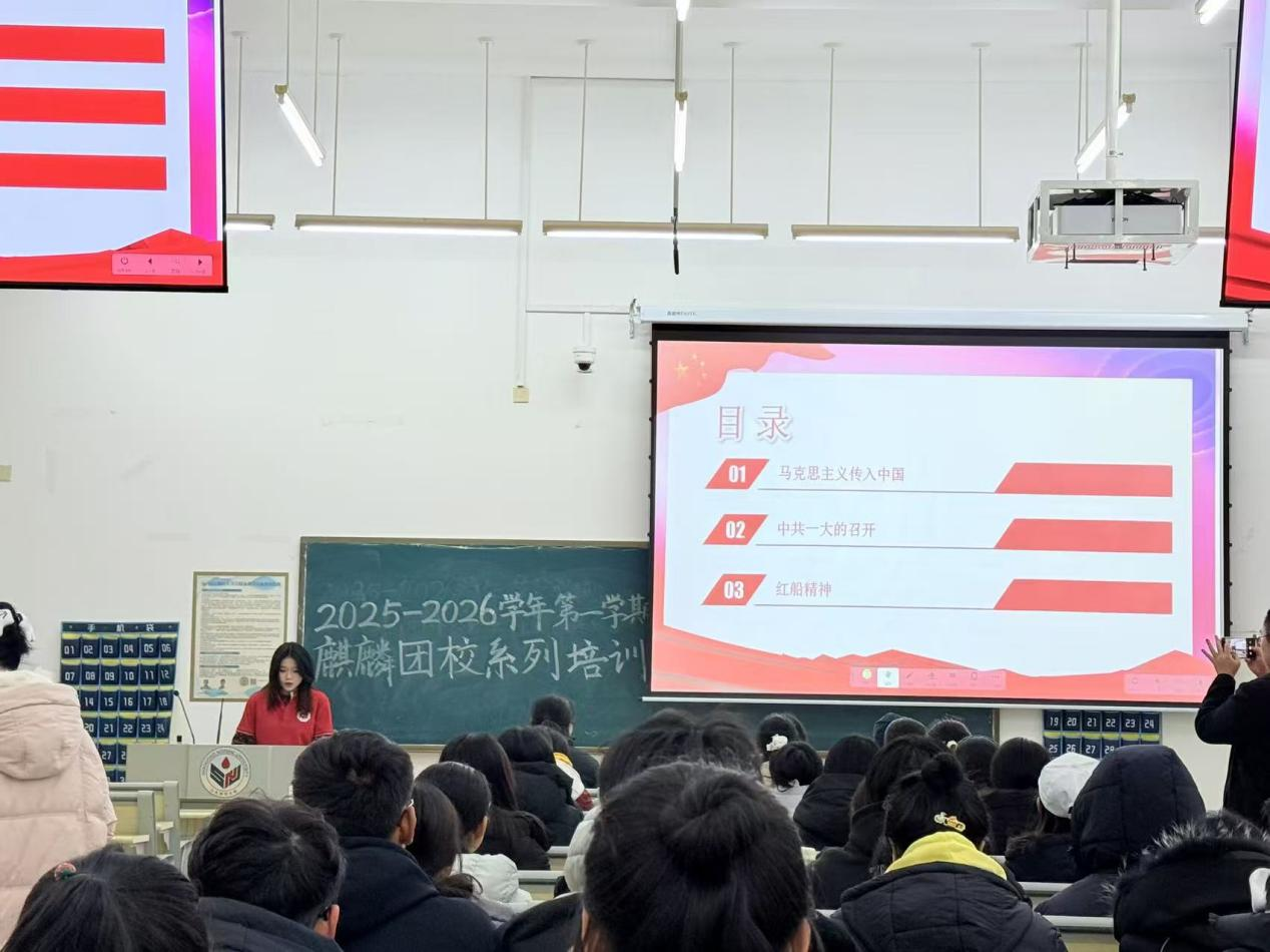 为筑牢团员们的理想信念根基,凝聚奋进新时代的精神力量,12月14日晚,历史文化学院于崇德楼114教室成功举办2025-2026学年第一学期第八期麒麟团校培训——“红船溯源·一大寻根”中国共产党党史专题学习会,由学子宣讲队成员罗嘉怡主讲,2025级部分团员参与。