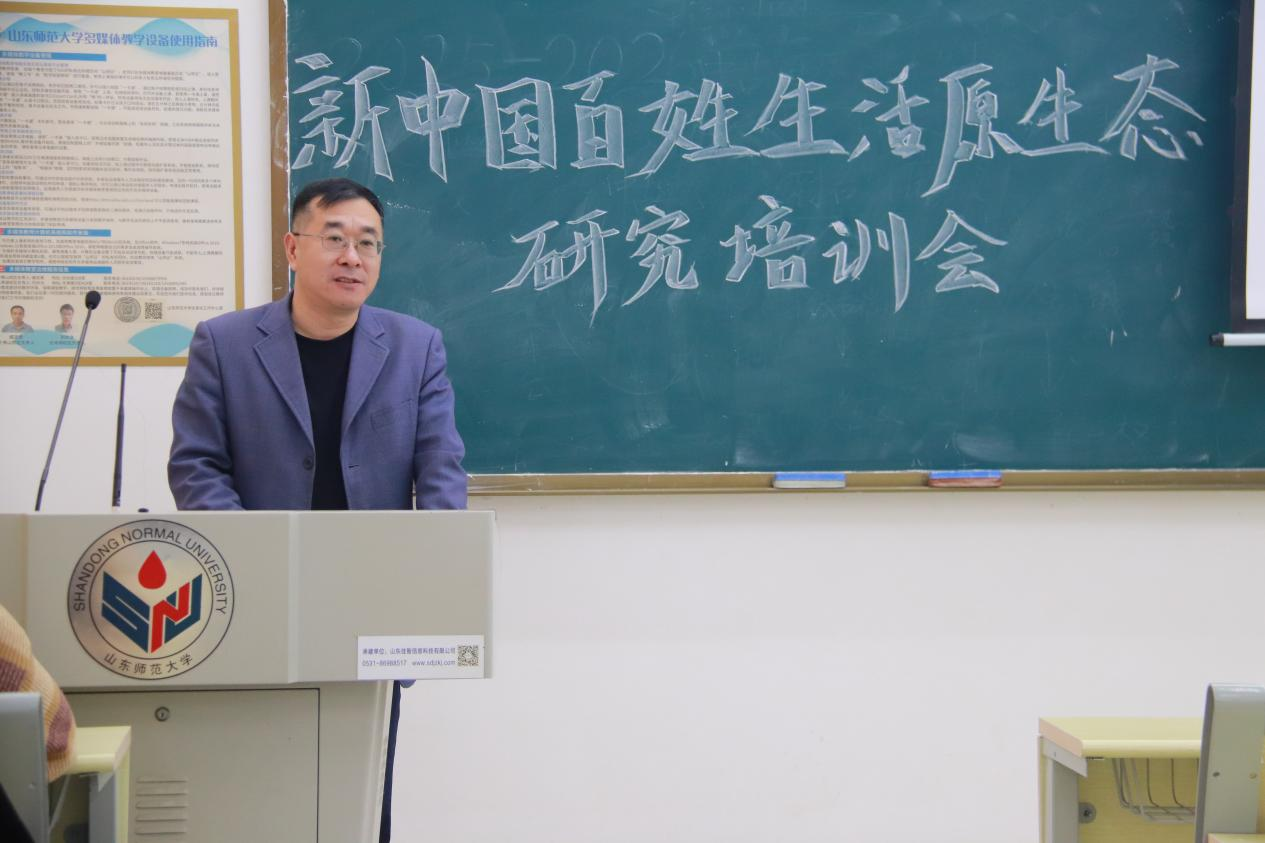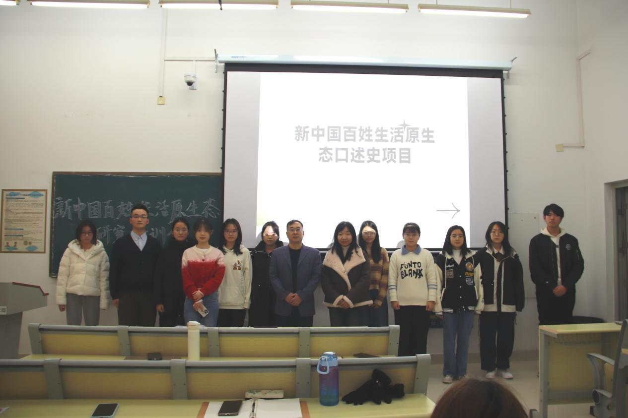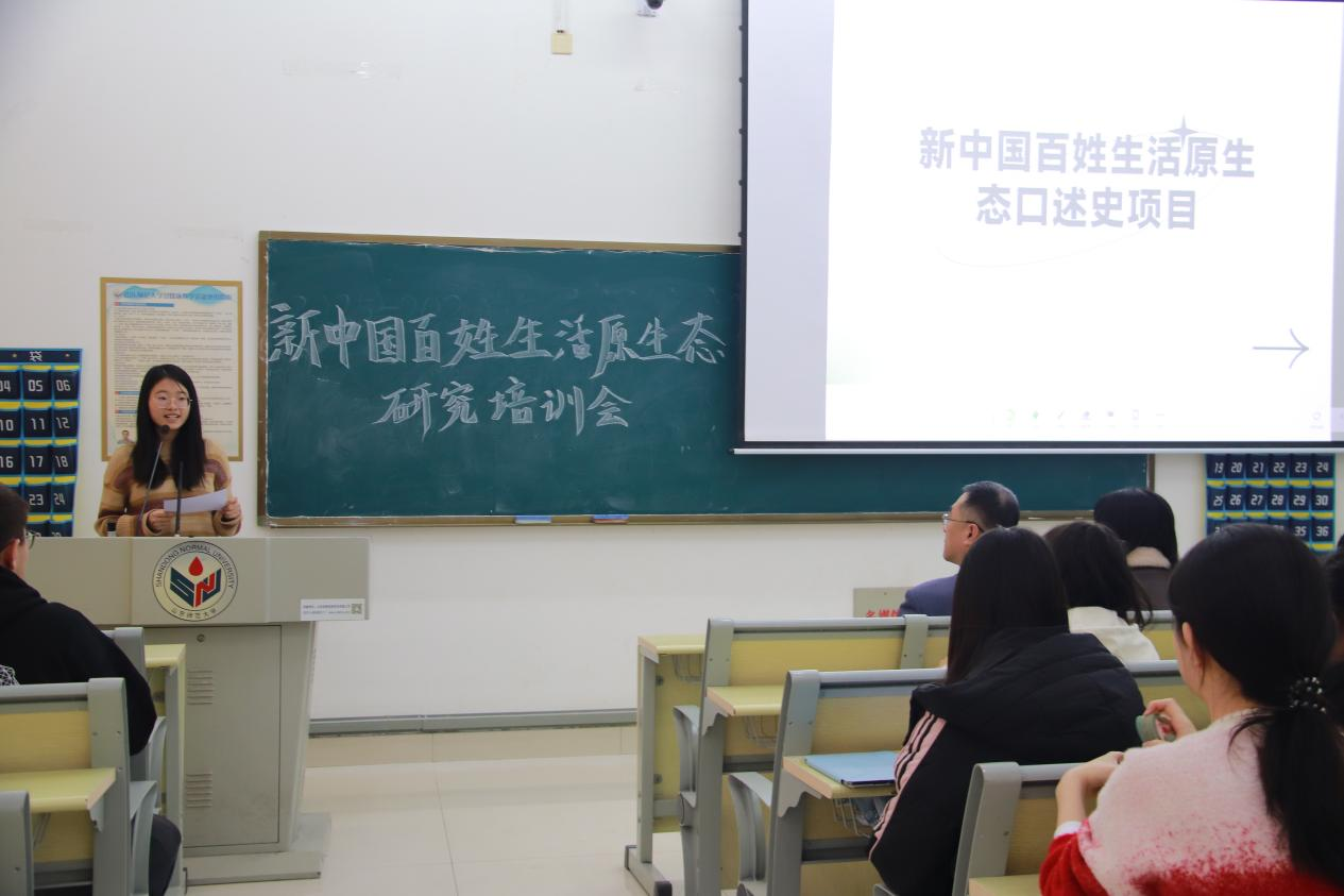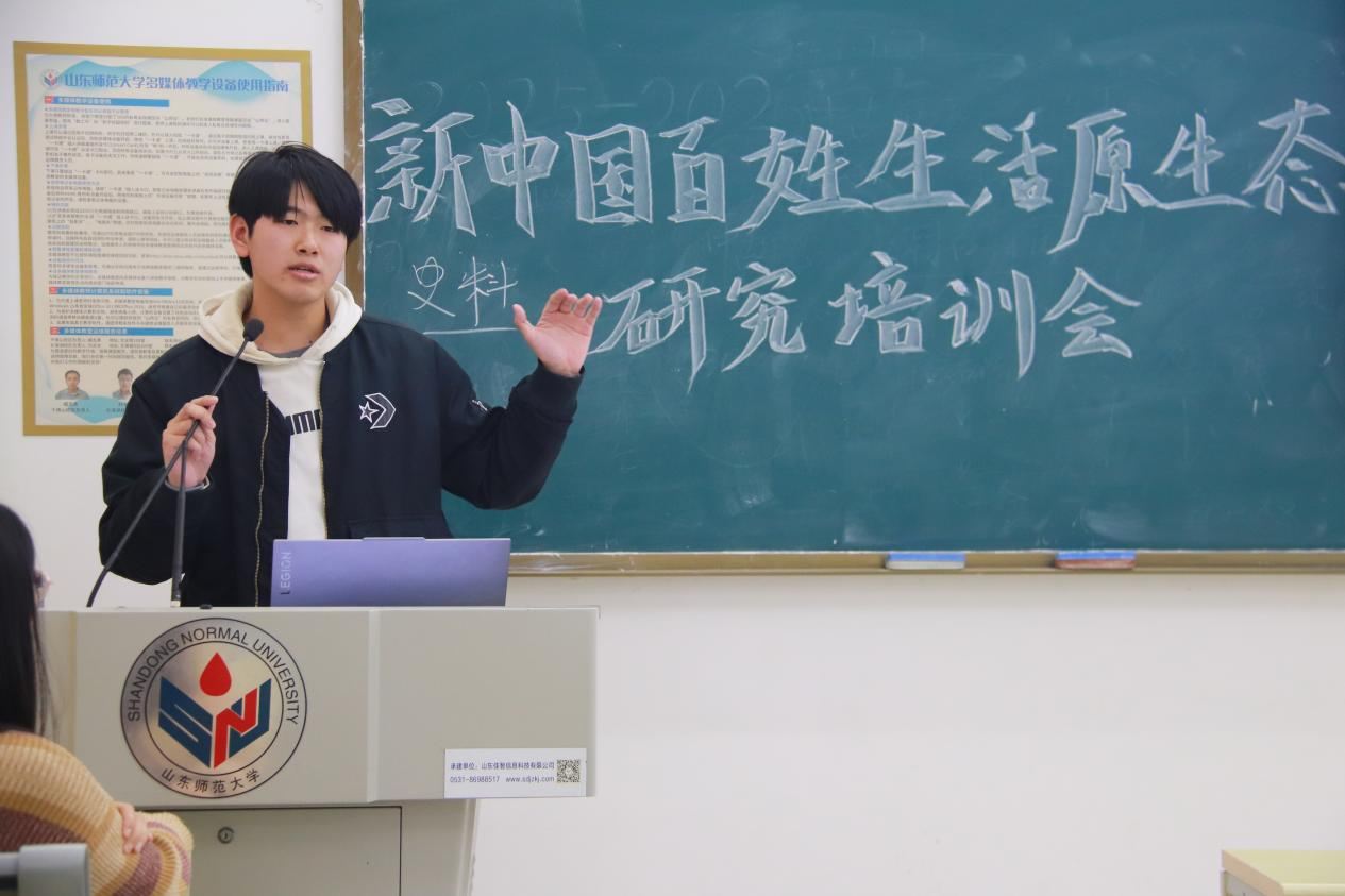 近日,由上海社科院与山东师范大学历史文化学院联合开展的新中国百姓生活原生态研究项目正逐步推进——项目聚焦“理发、洗澡、如厕”等日常场景,记录百姓原生态口述故事,抢救国史研究的珍贵微观史料。为扎实推进项目落地,助力同学们以专业姿态开展调研实践,12 月 18 日下午,历史文化学院于崇德楼 114 教室举办新中国百姓生活原生态口述史项目培训会,本次培训会由武宸宇主持,学院副院长、教授刘志鹏,团委书记、学工办主任董欣,口述史实践优秀学子褚峥、赵家玺作为嘉宾出席本次培训会。
